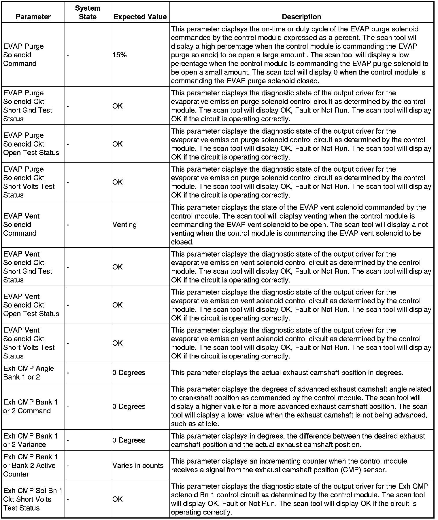 The Engine Control Module Scan Tool Data List contains all engine-related parameters that are available on the scan tool. The list is arranged in alphabetical order. A given parameter may appear in any one of the data lists, and in some cases may appear more than once, or in more than one data list in order to group certain related parameters together.