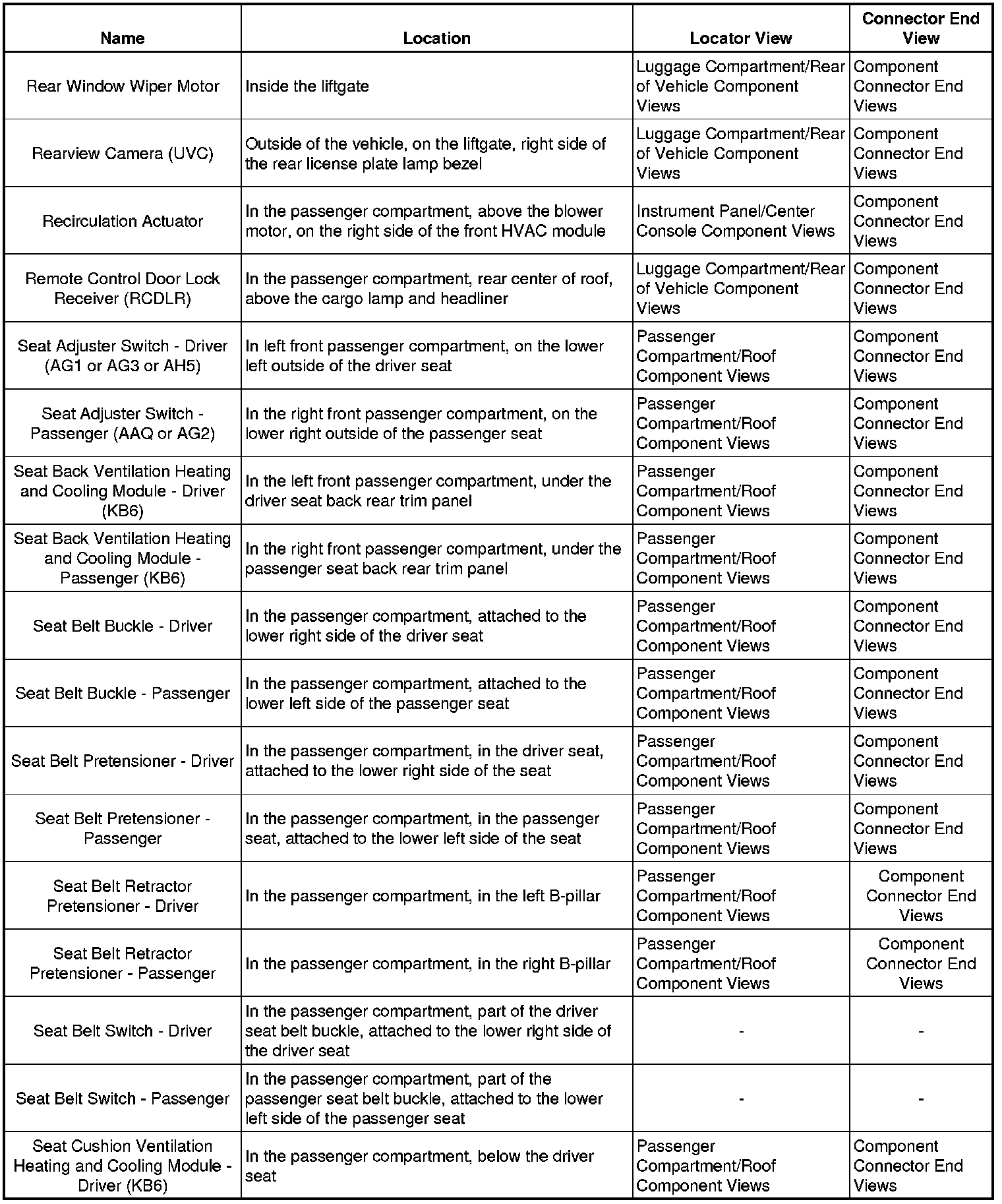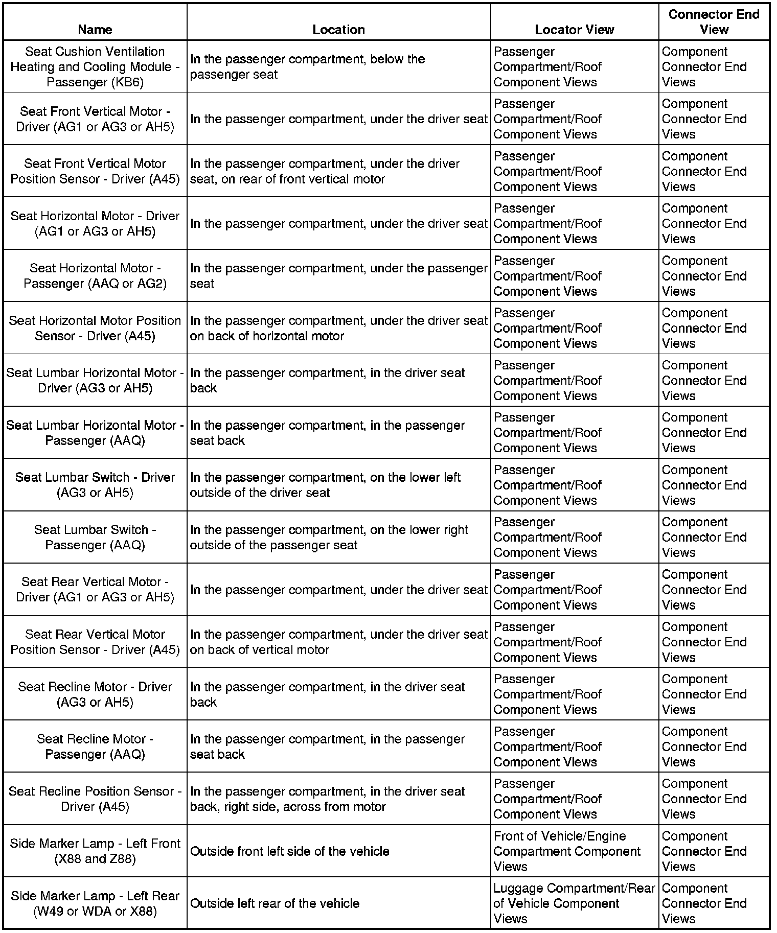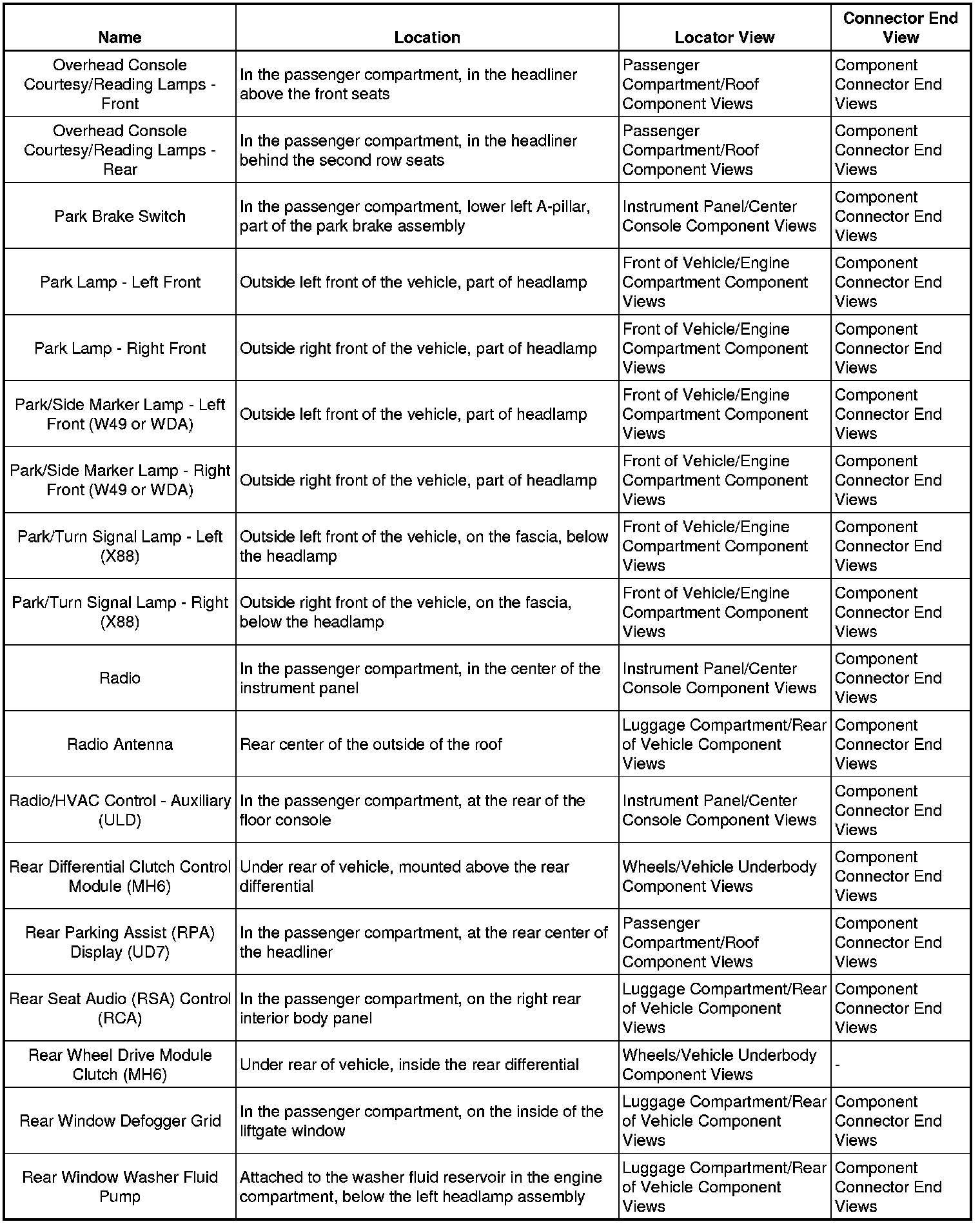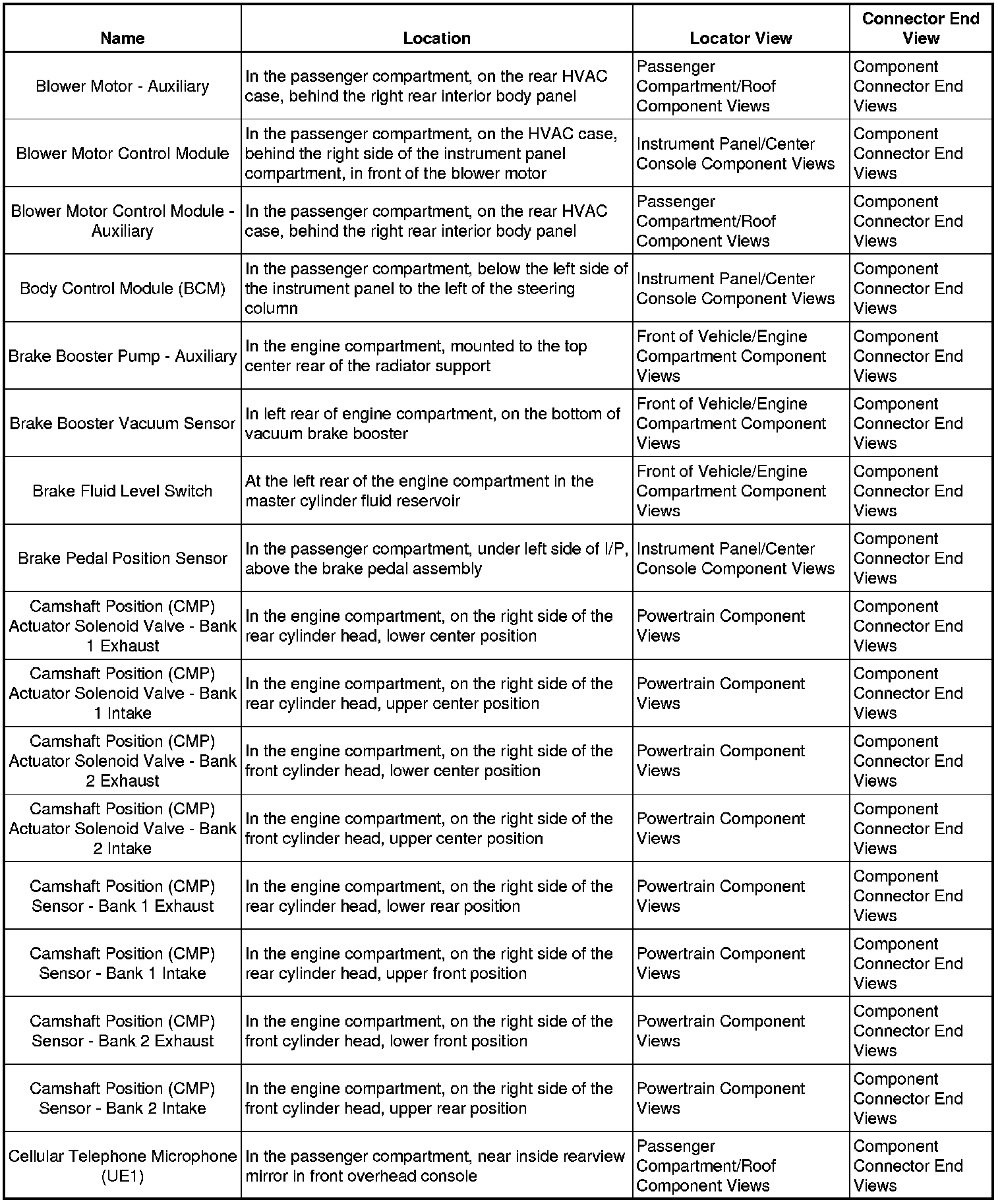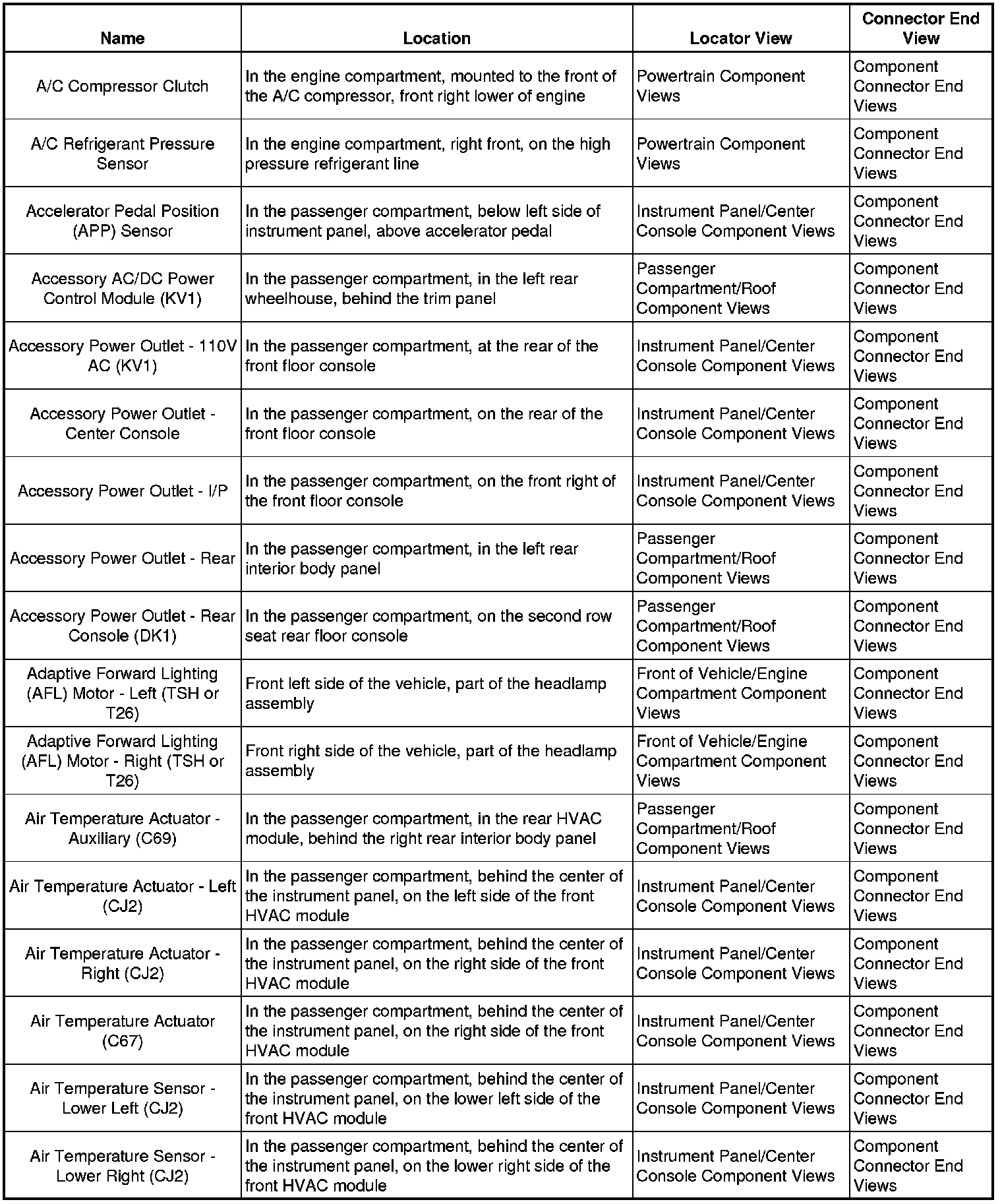 Master Electrical Component List