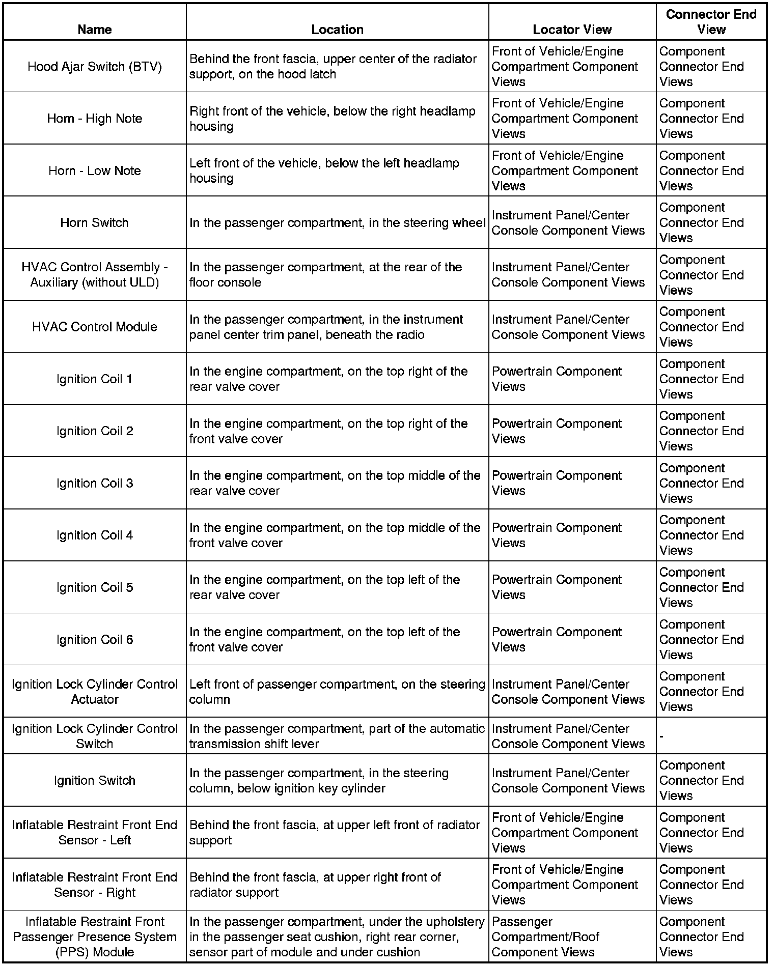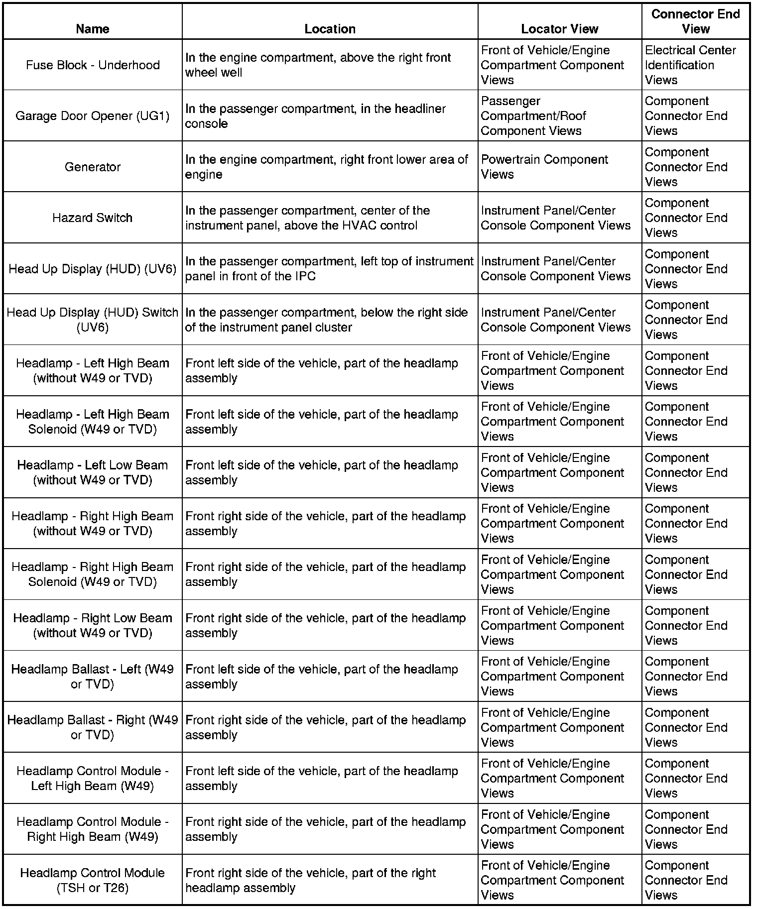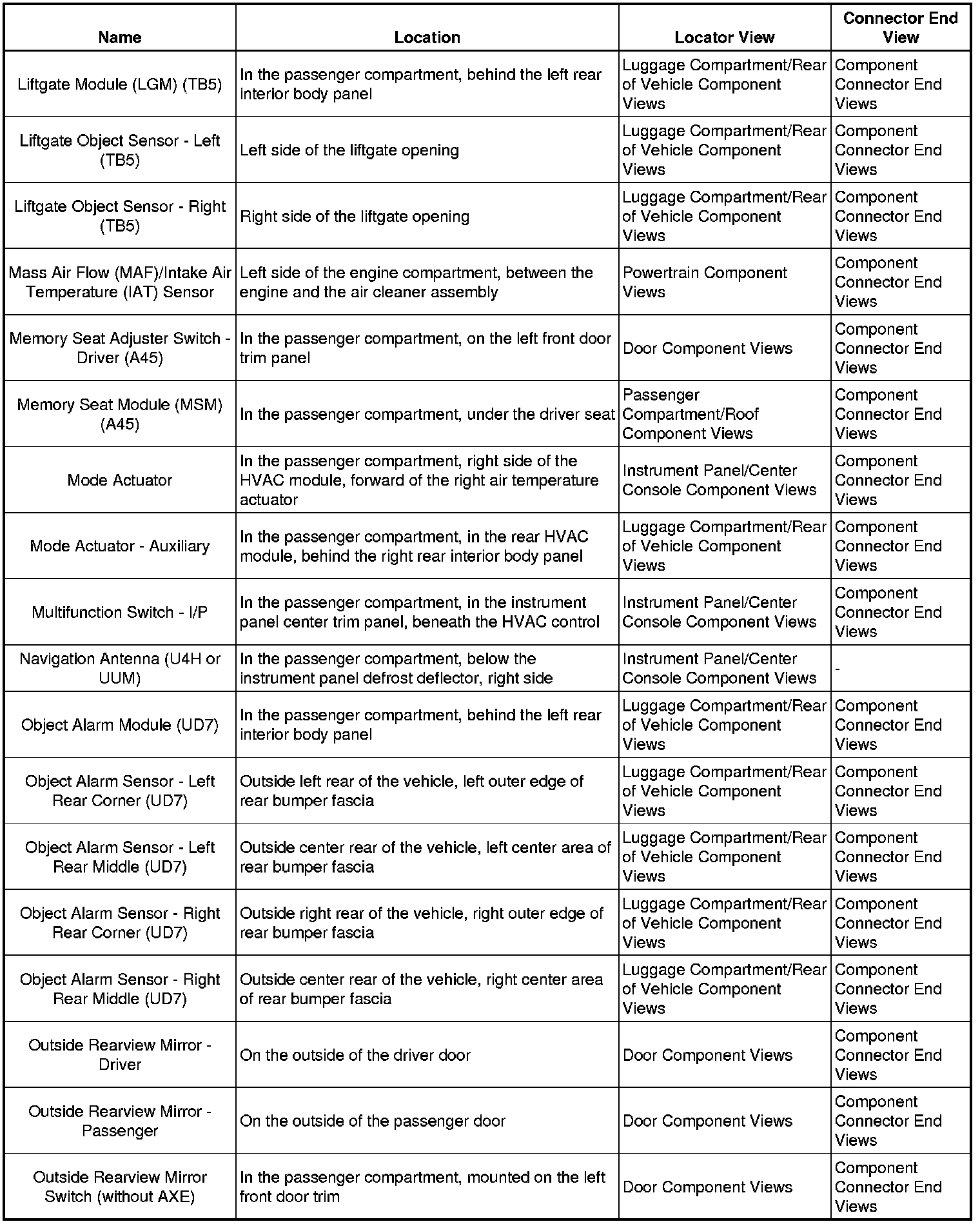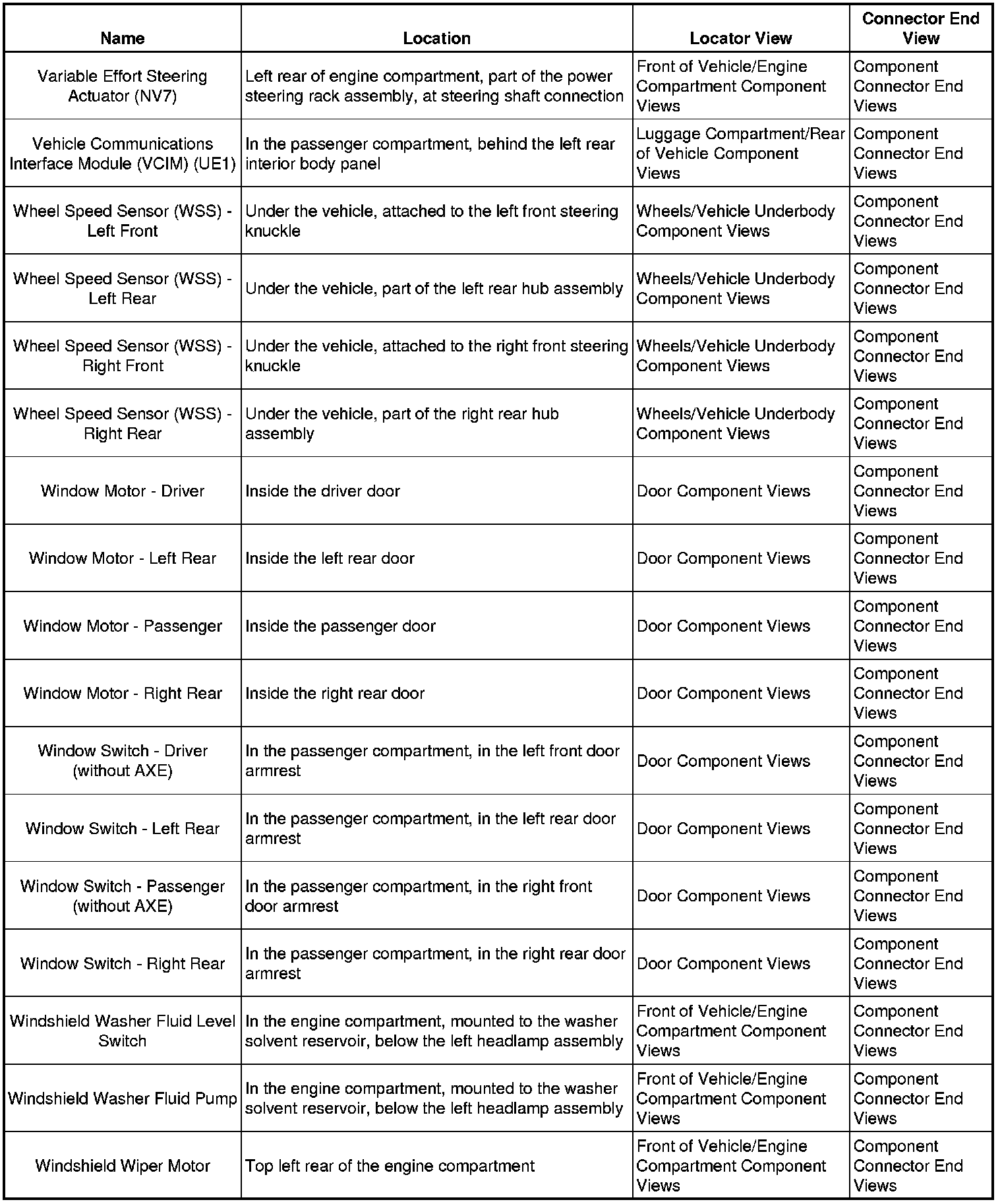Master Electrical Component List