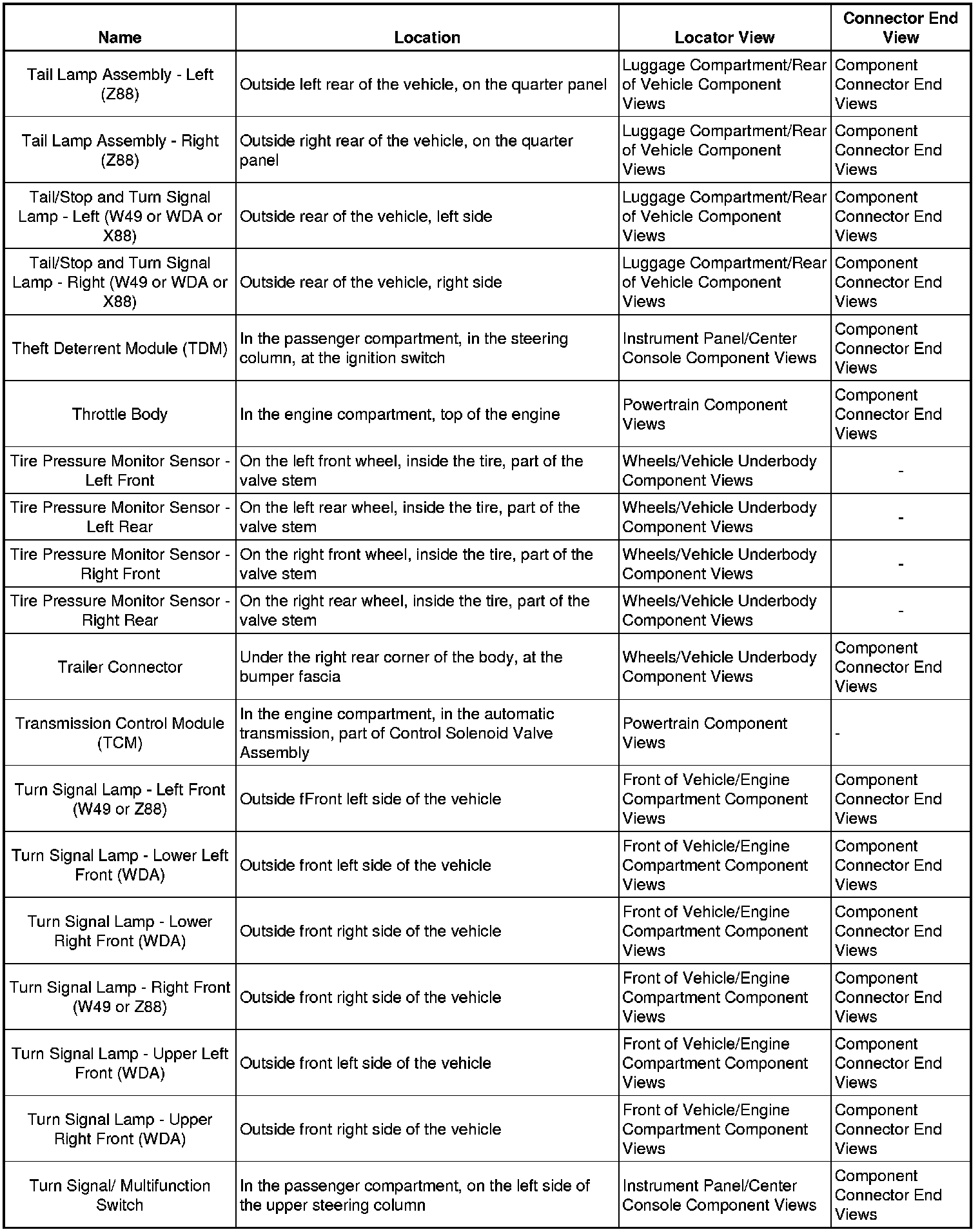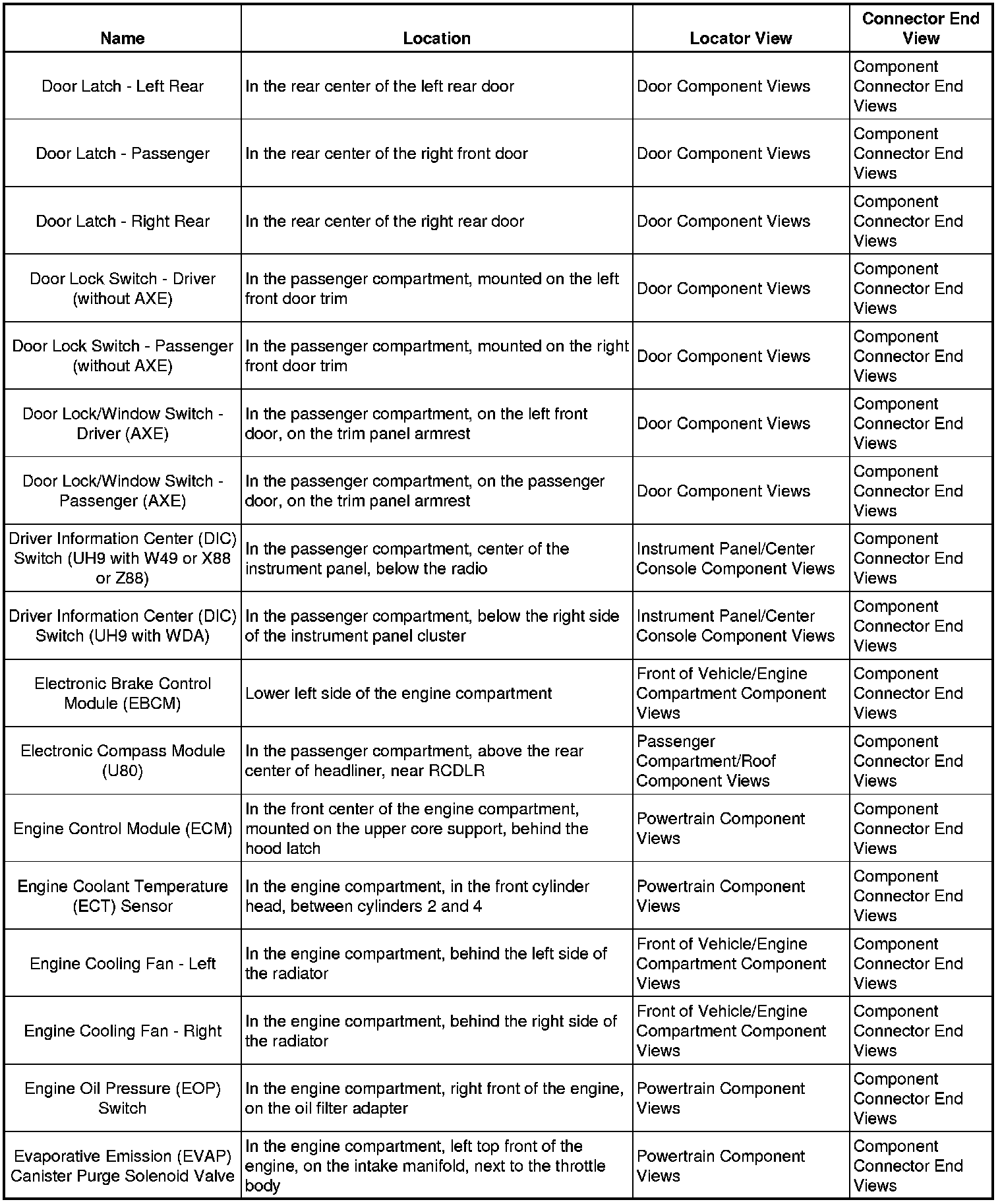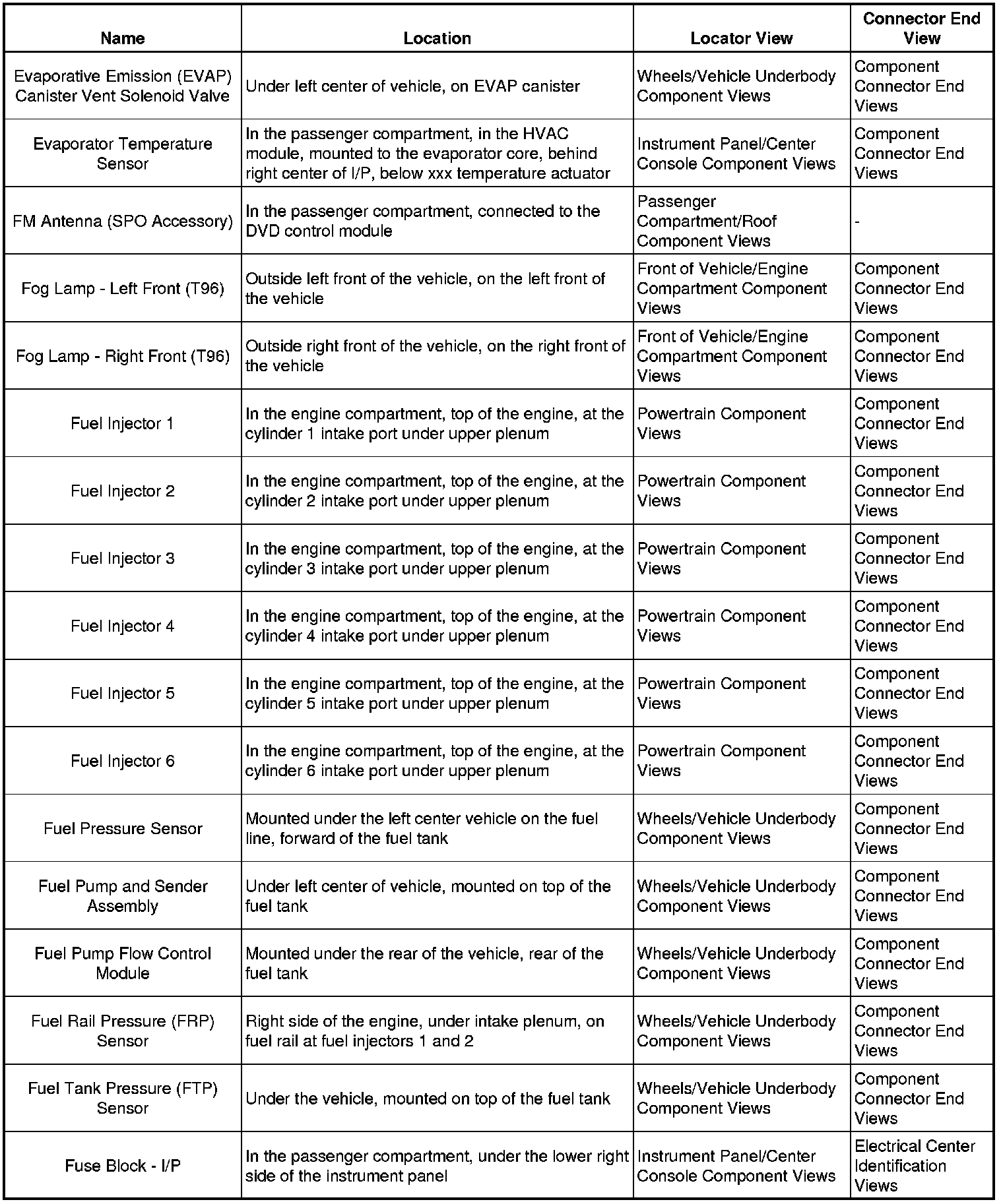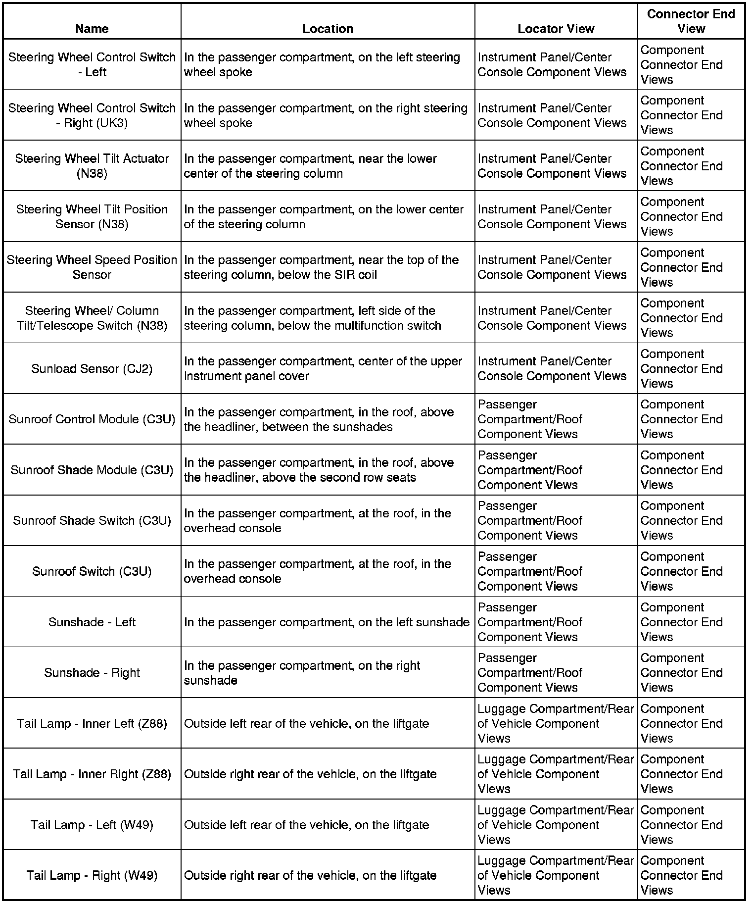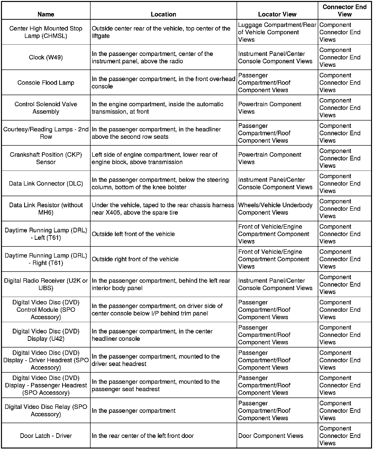 Master Electrical Component List