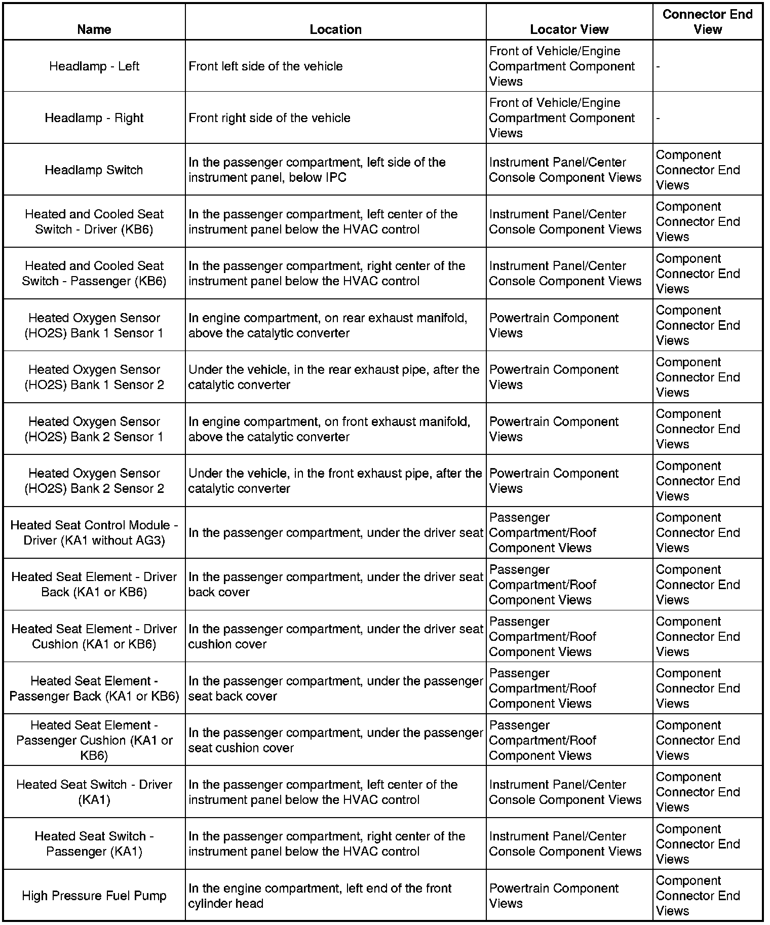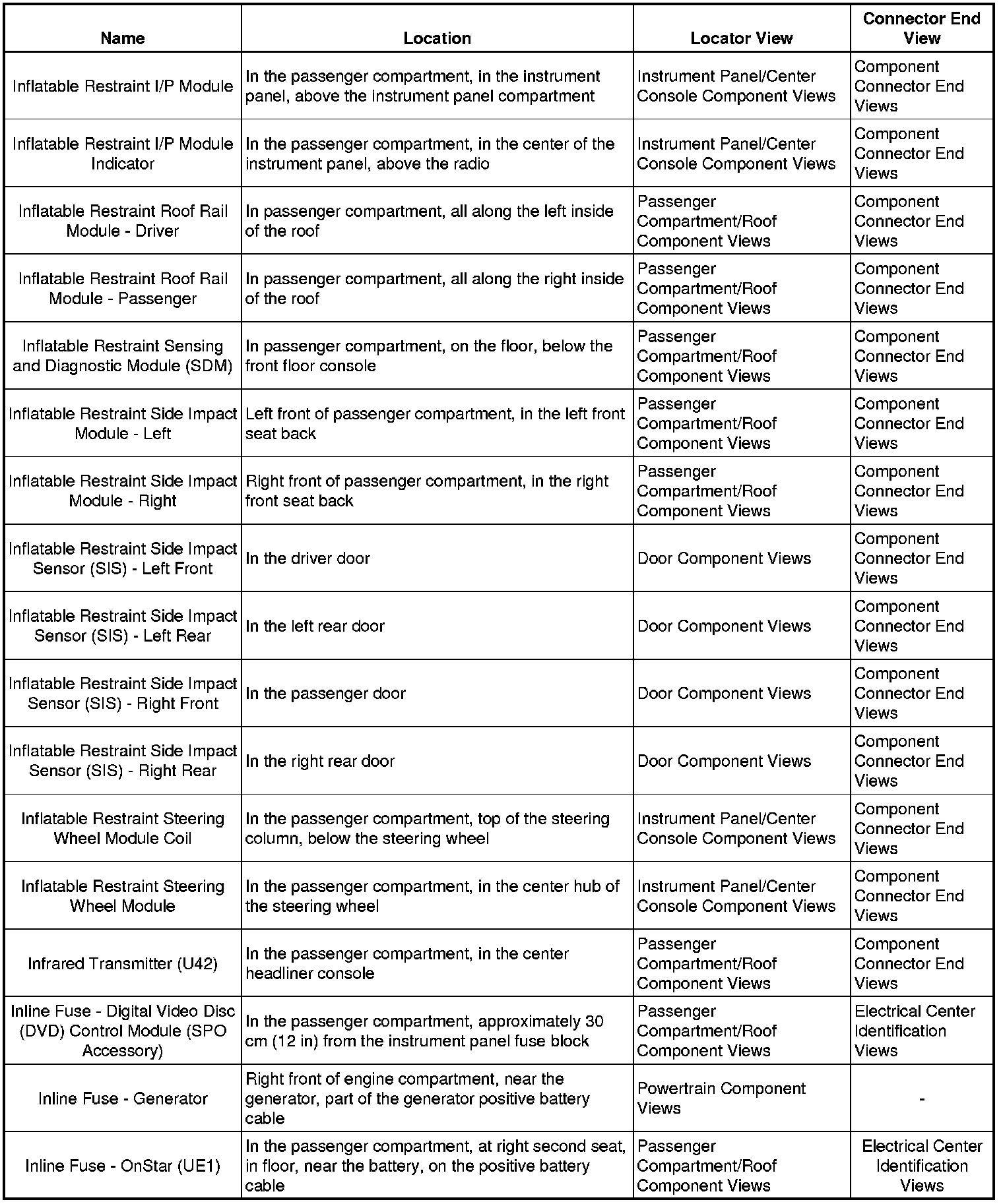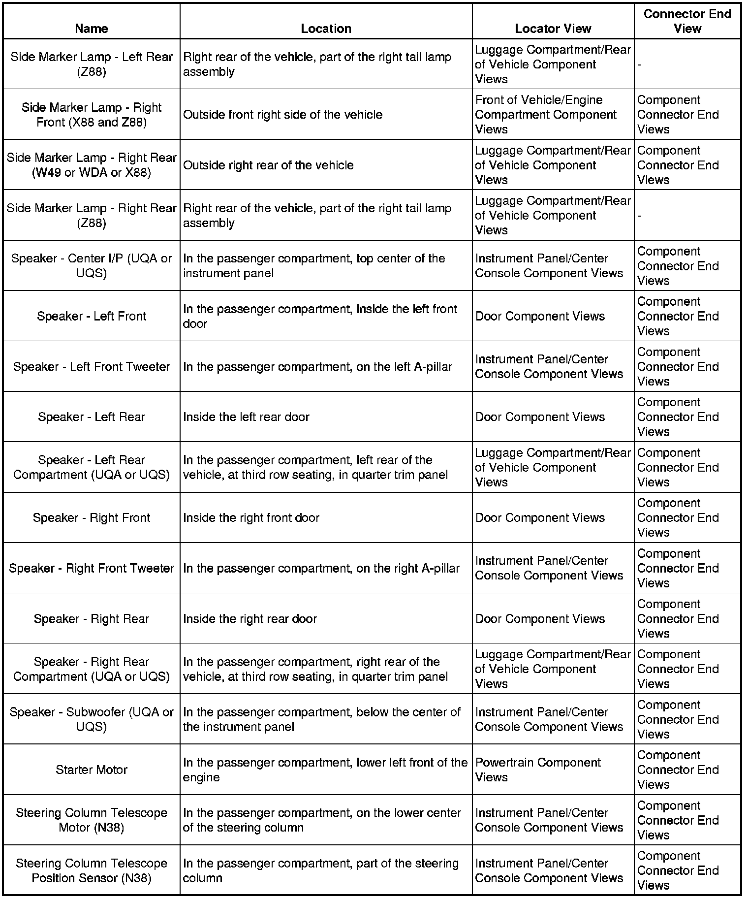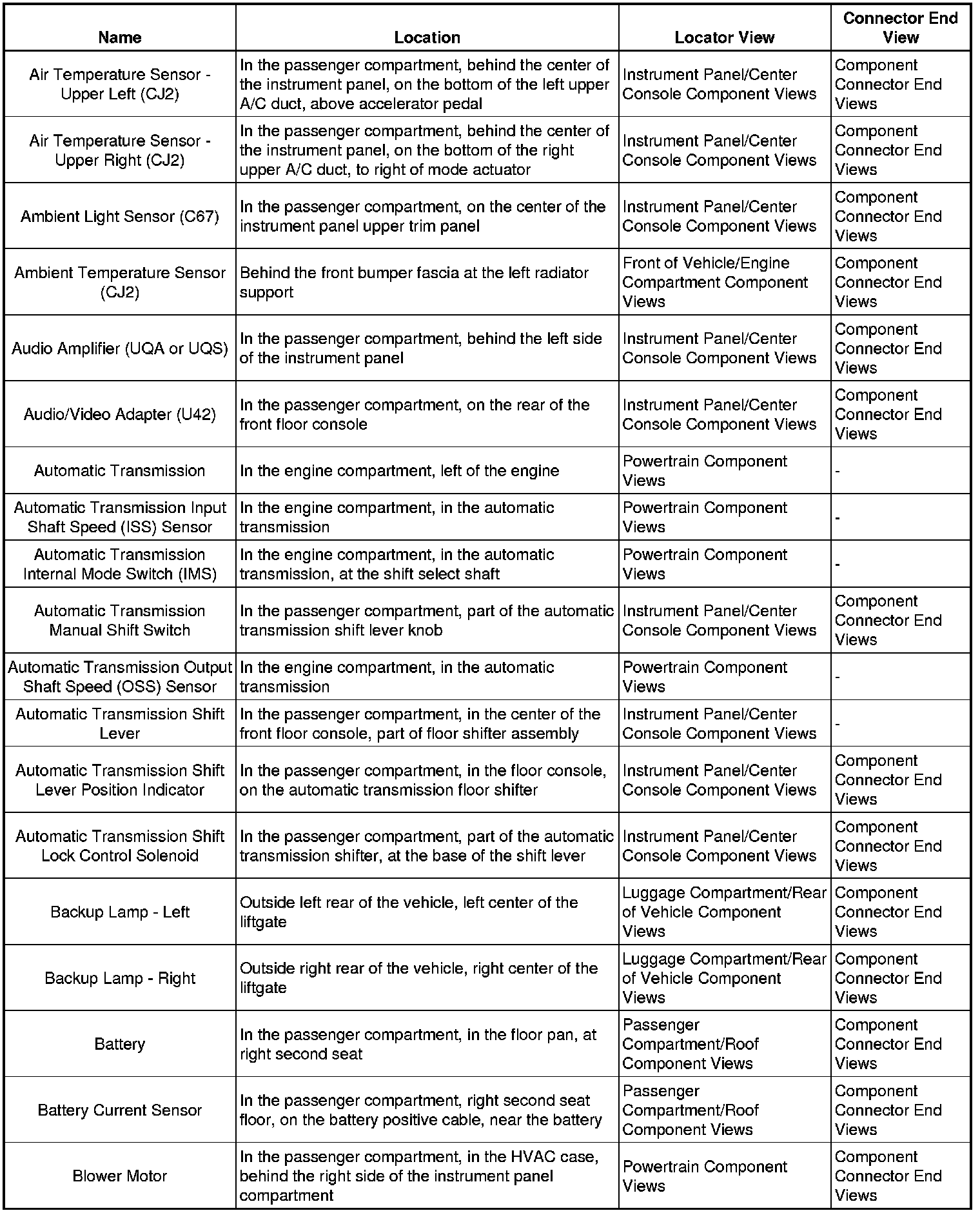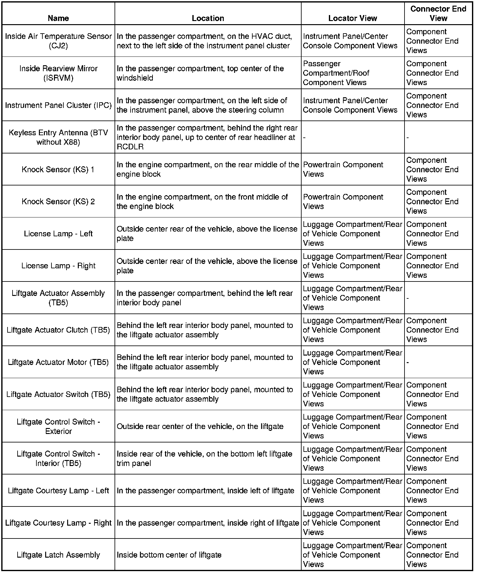 Master Electrical Component List