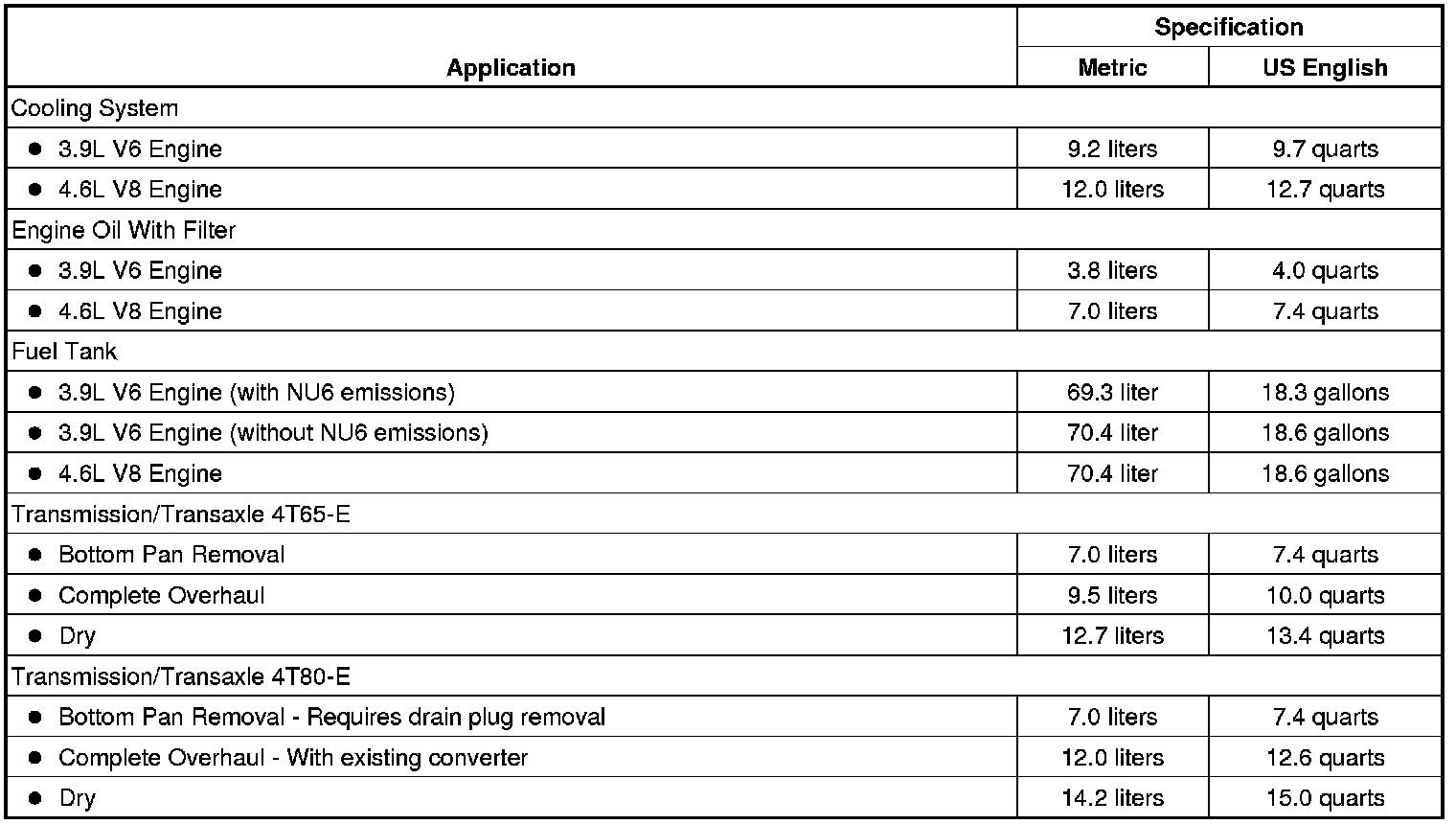 Home >> Buick >> 2010 >> Lucerne V6-3.9L >> Repair and Diagnosis >> Specifications >> Capacity Specifications >> Maintenance