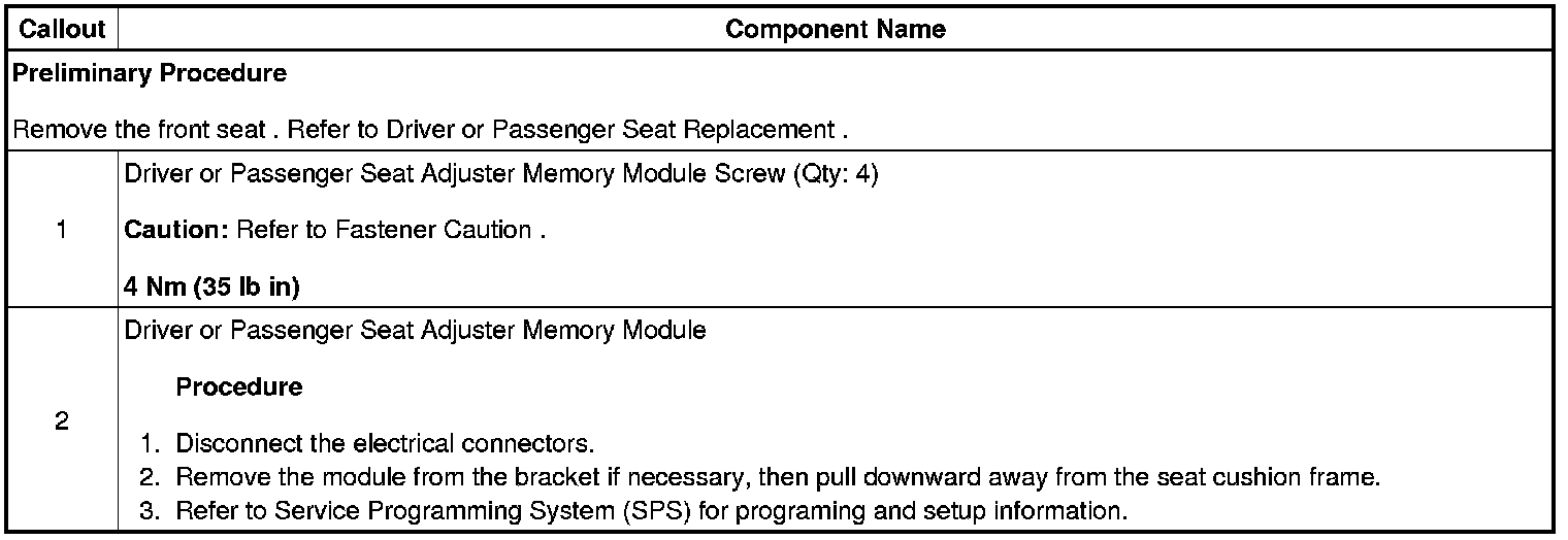 Driver or Passenger Seat Adjuster Memory Module Replacement