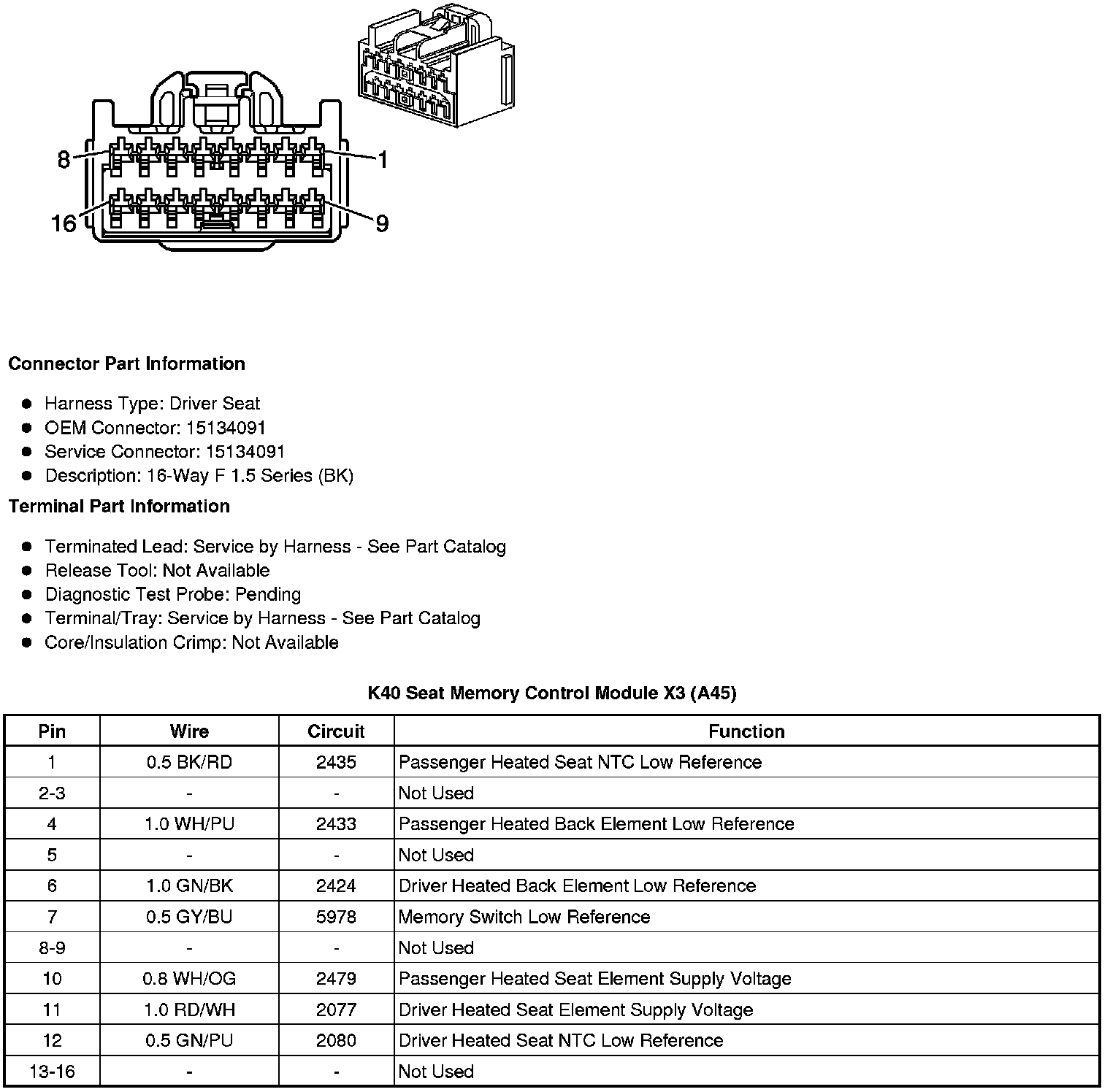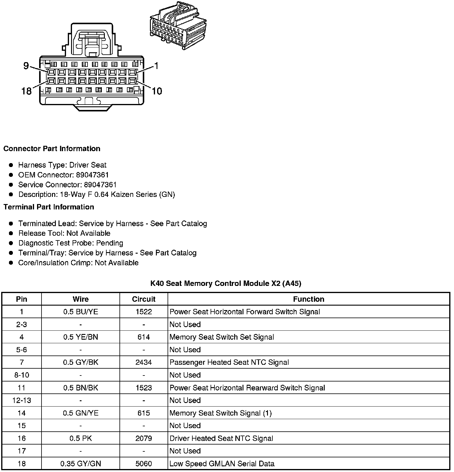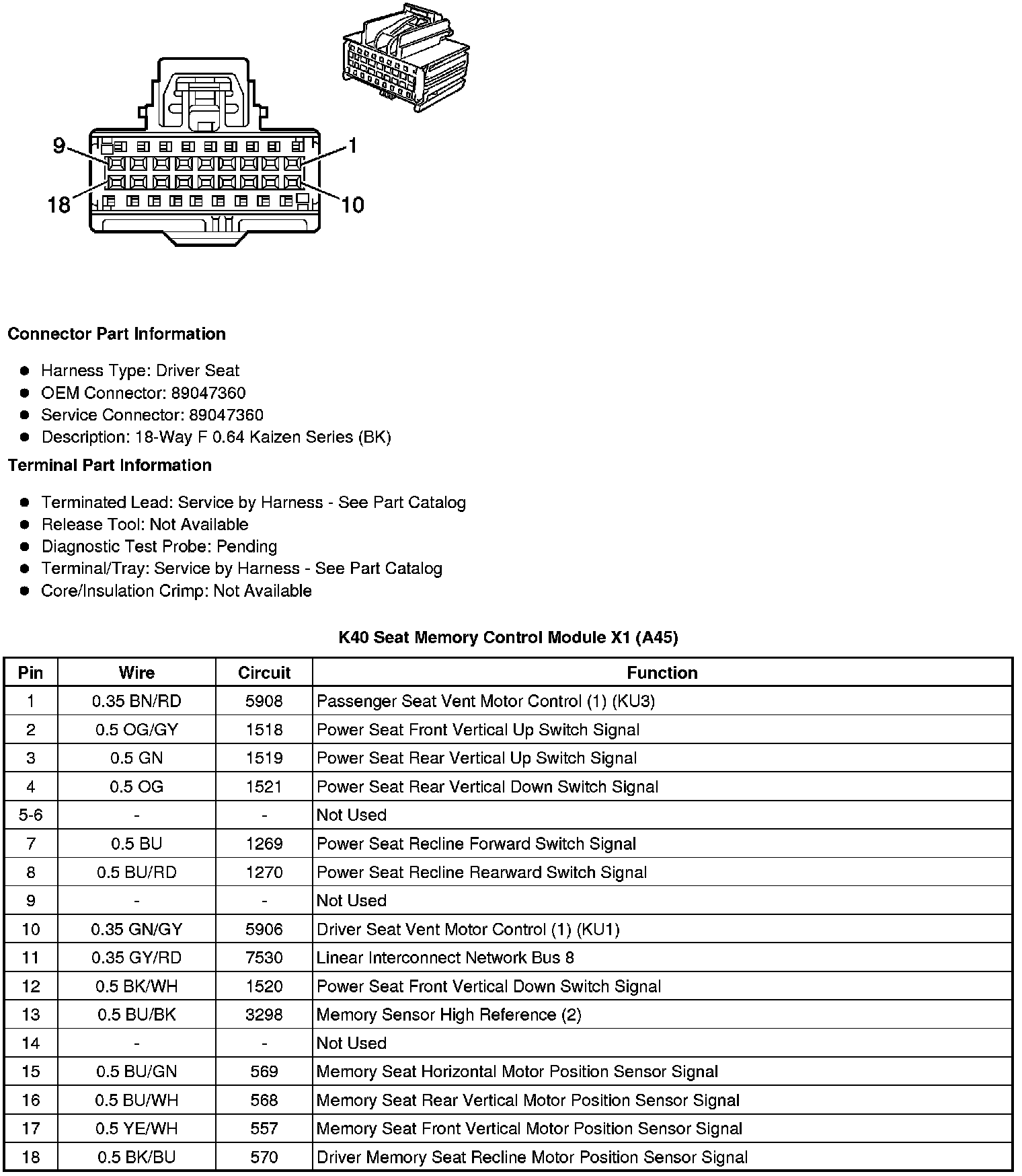 K40 Seat Memory Control Module X4 (A45)