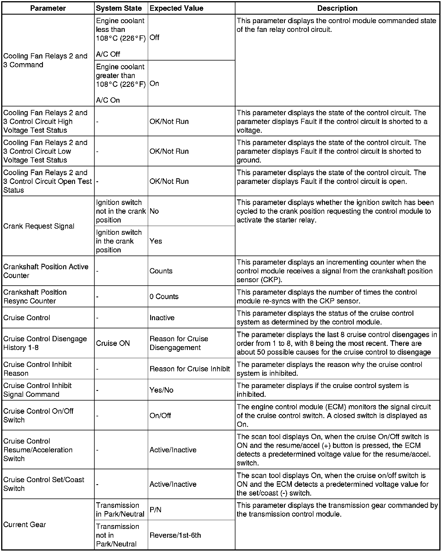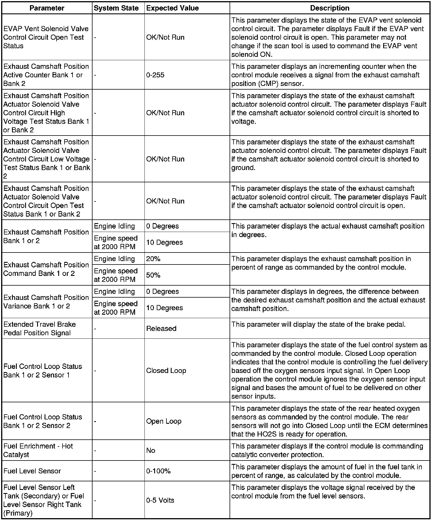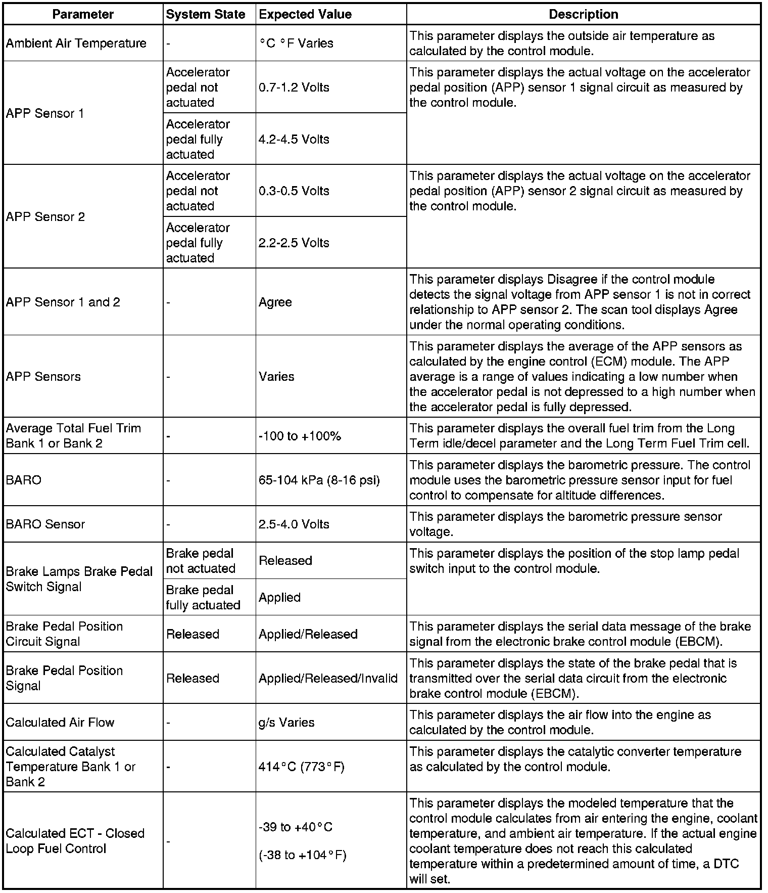 The Engine Control Module Scan Tool Data List contains all engine-related parameters that are available on the scan tool. The list is arranged in alphabetical order. A given parameter may appear in any one of the data lists, and in some cases may appear more than once, or in more than one data list in order to group certain related parameters together.