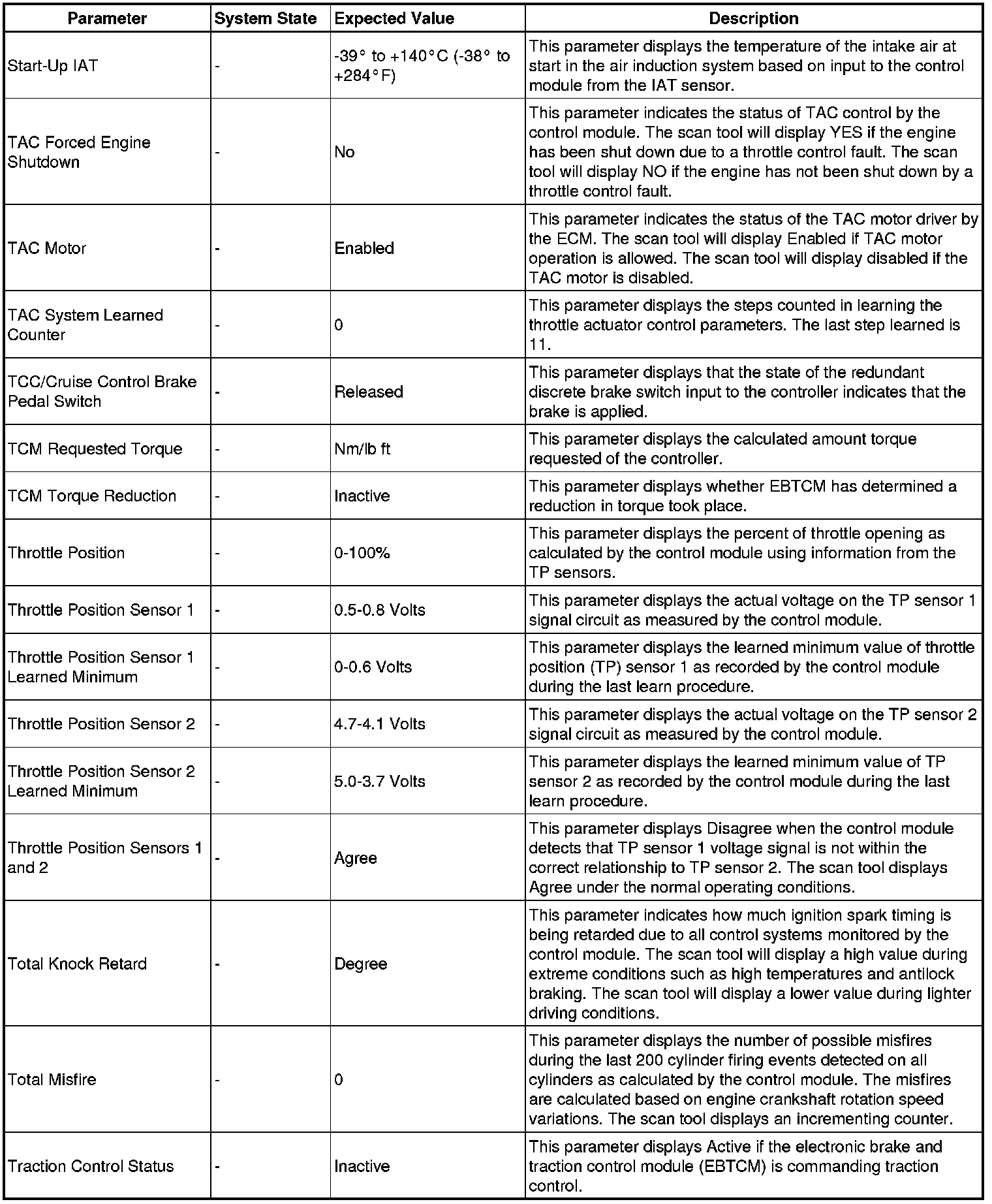 Only the parameters listed below are referenced in this service manual for use in diagnosis.