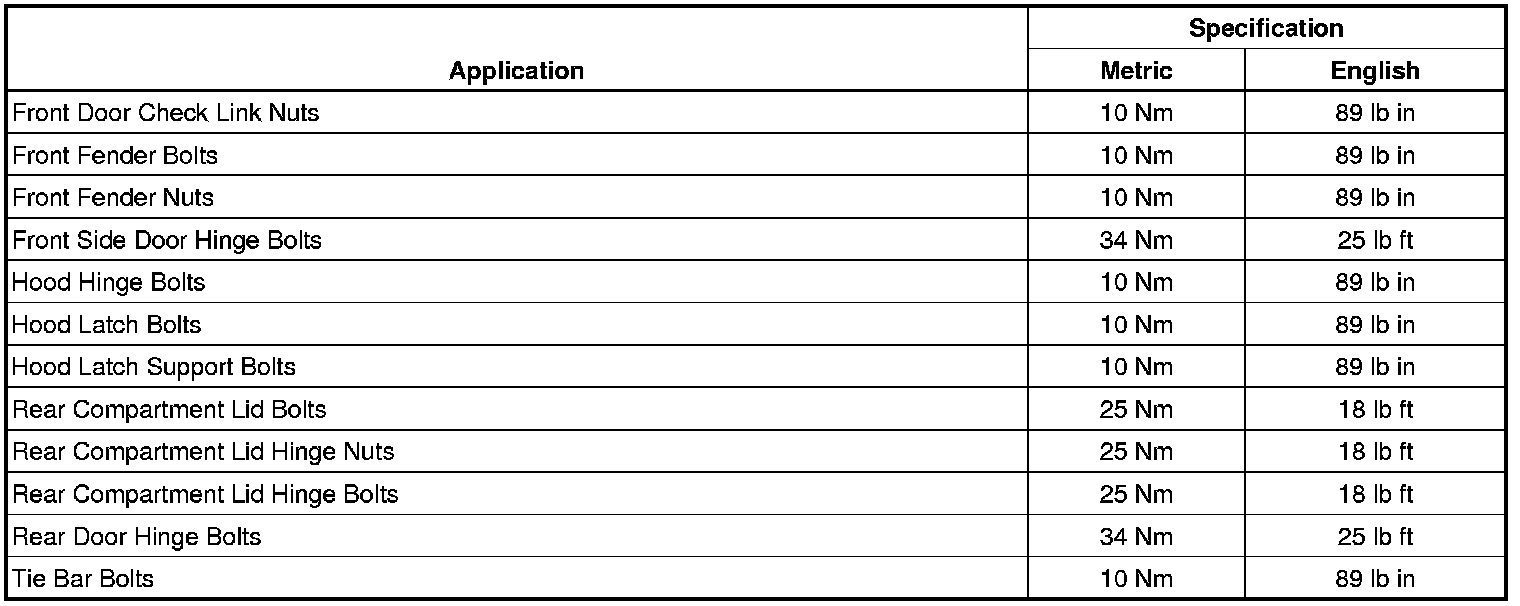 Fastener Tightening Specifications