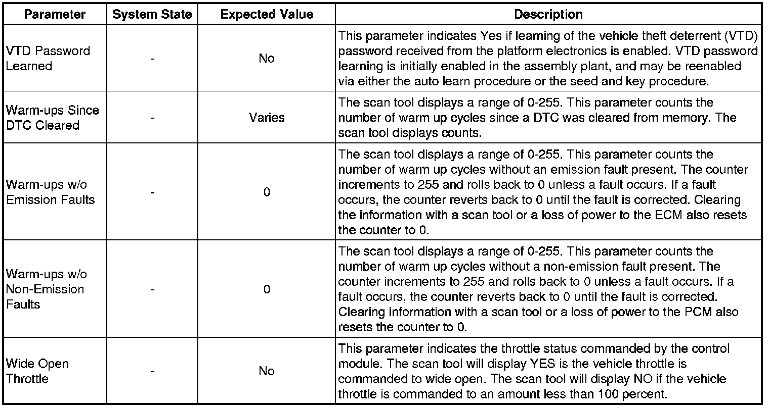 The Engine Control Module (ECM) Scan Tool Data List contains all ECM-related parameters that are available on the scan tool. The list is arranged in alphabetical order. A given parameter may appear in any one of the data lists, and in some cases may appear more than once, or in more than one data list in order to group certain related parameters together.