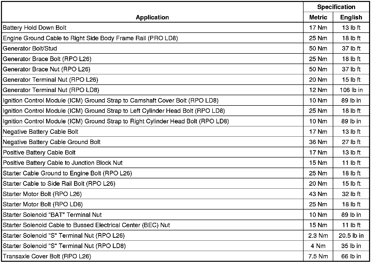 Starting and Charging: Specifications