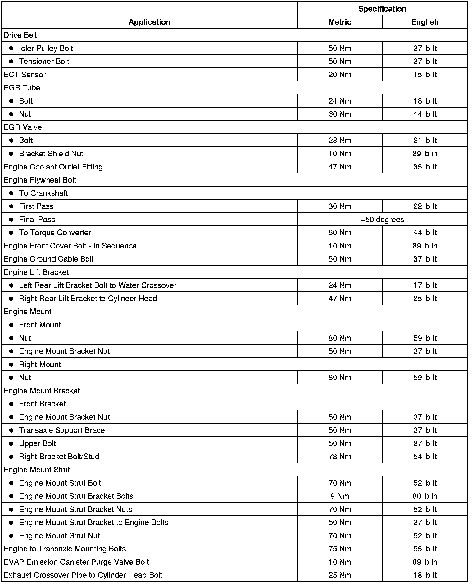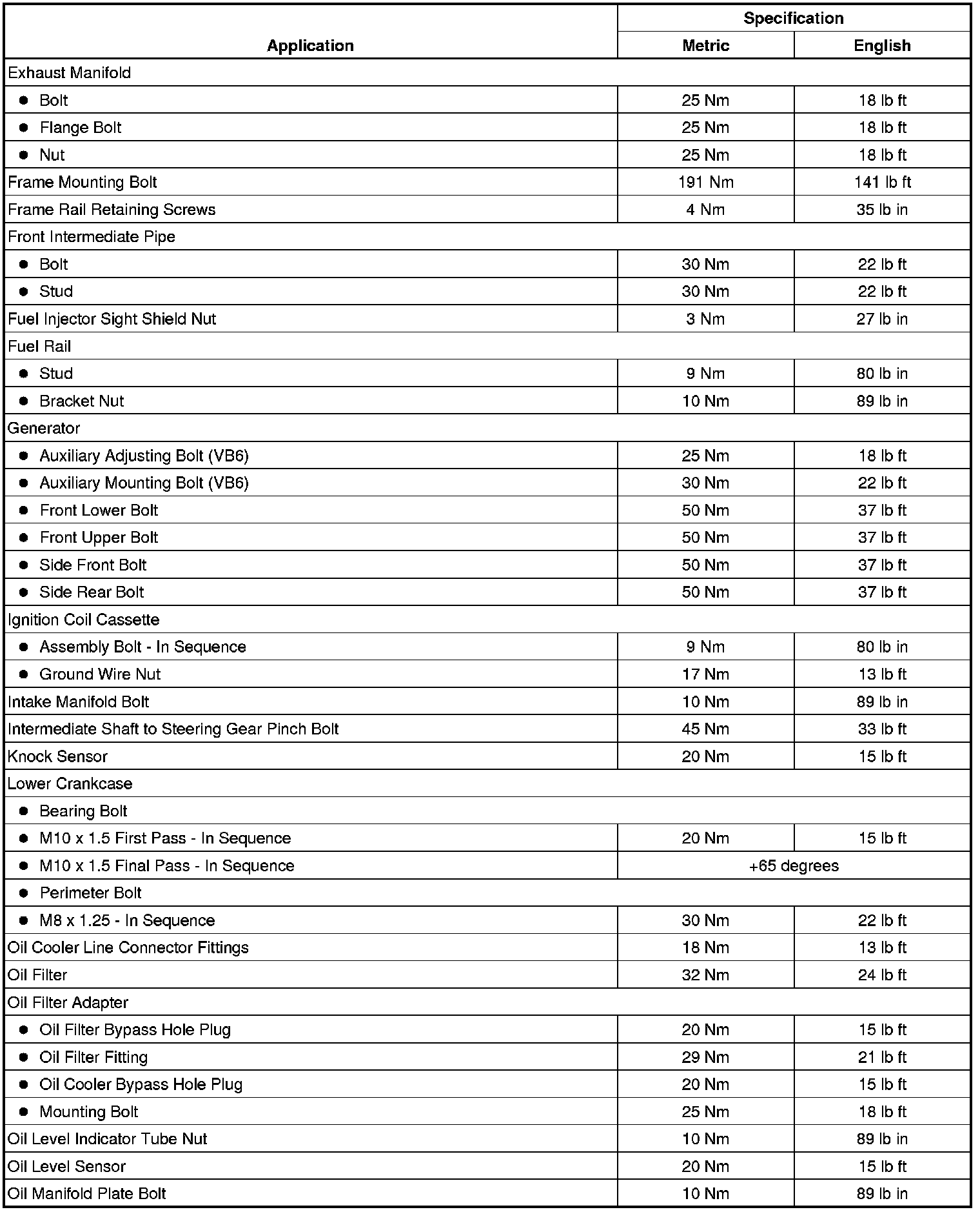 Fastener Tightening Specifications