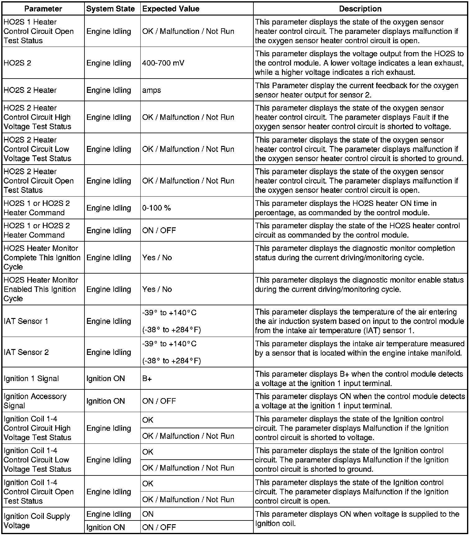 Only the parameters listed below are referenced in this service manual for use in diagnosis.
