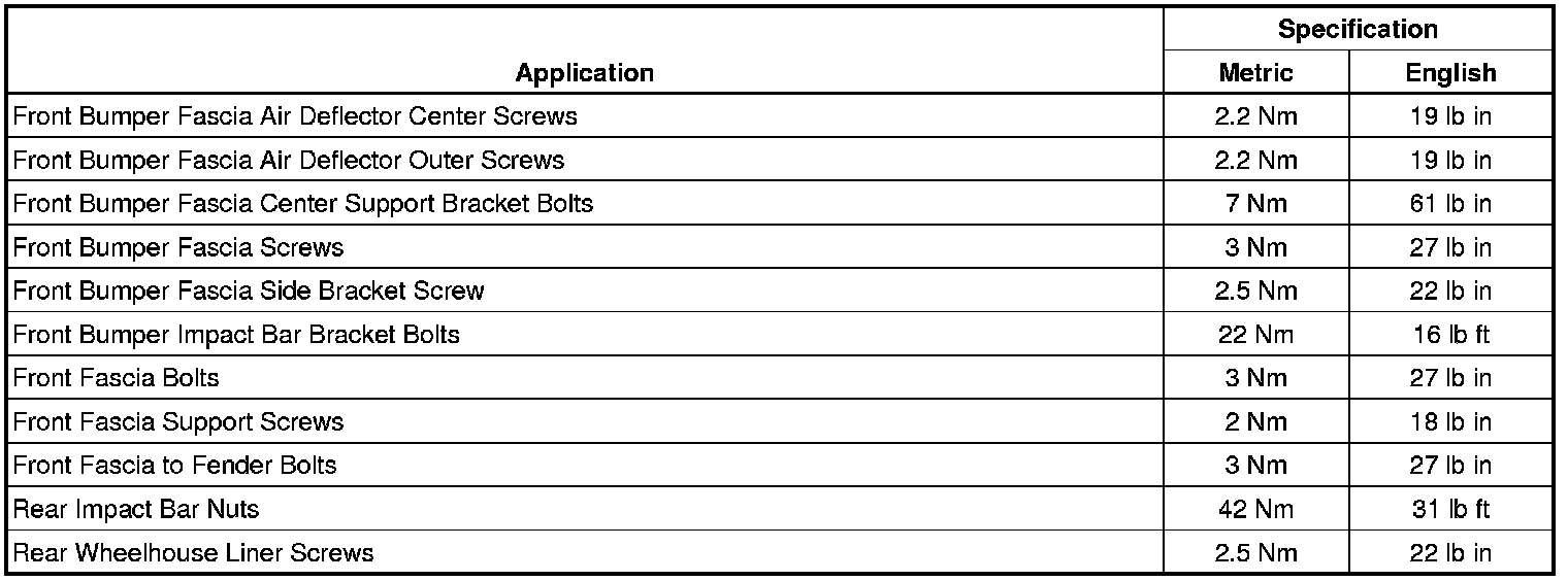 Bumper: Specifications