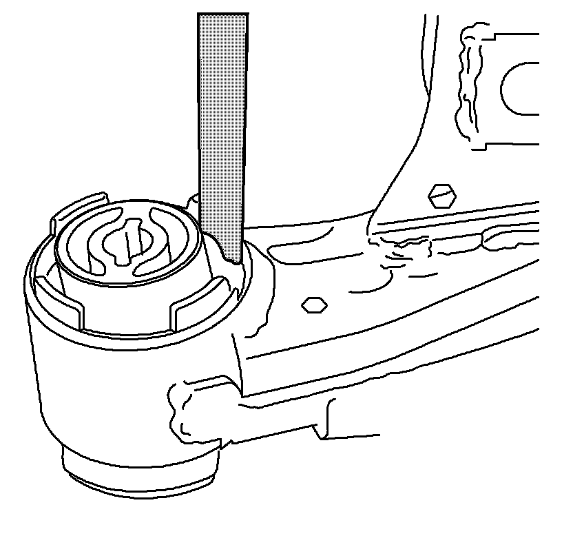 Note: The bushing can be damaged if it is pressed to deep. The bushing should be pressed so that the flange on the bushing is resting on the rear suspension support.