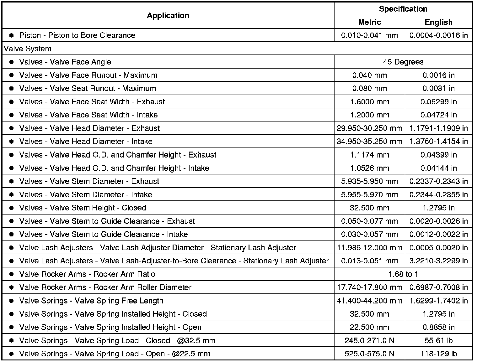 Engine Mechanical Specifications (LAF) (2.4L)