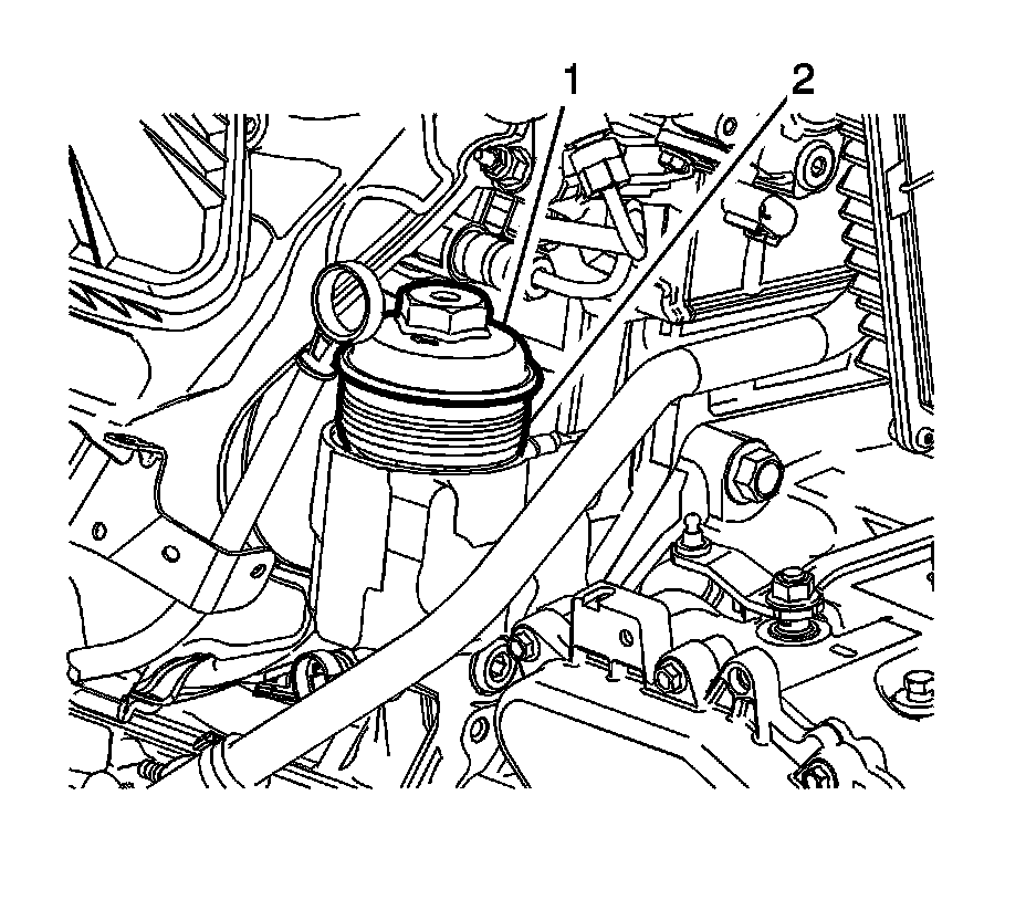 9. Use an oil filter wrench on the outside diameter of the oil filter cap (1).