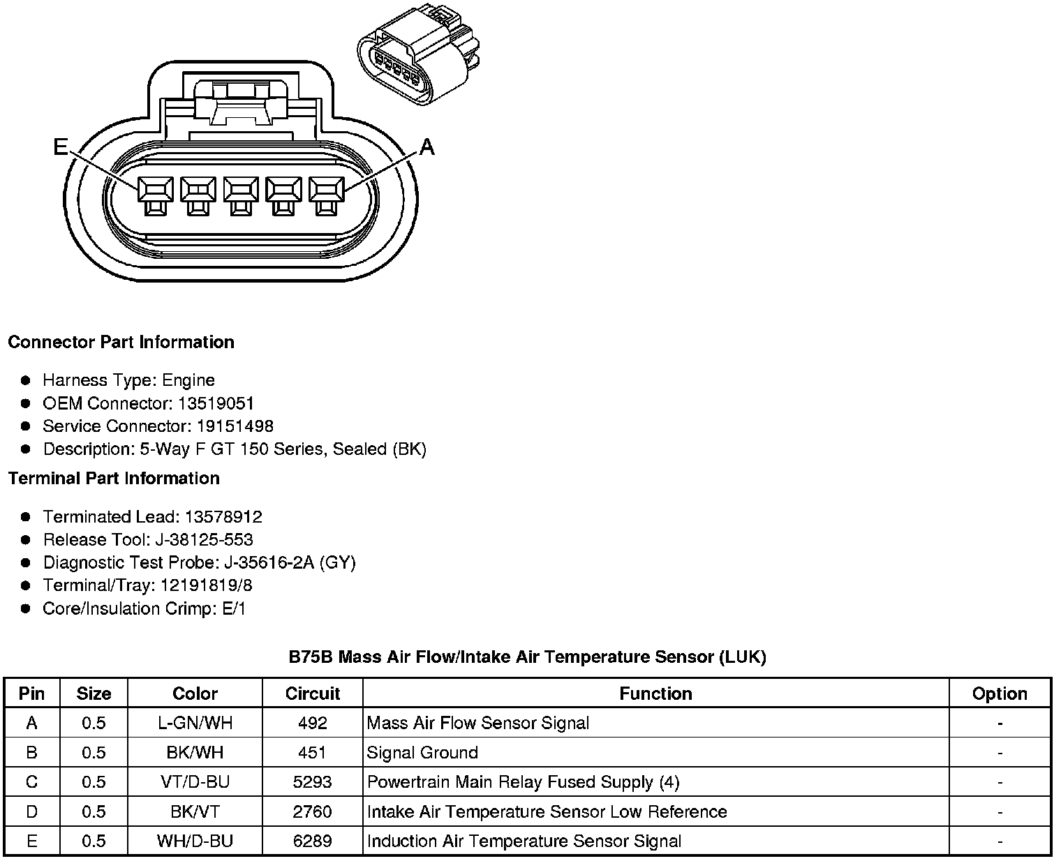 B75B Mass Air Flow/Intake Air Temperature Sensor (LUK)