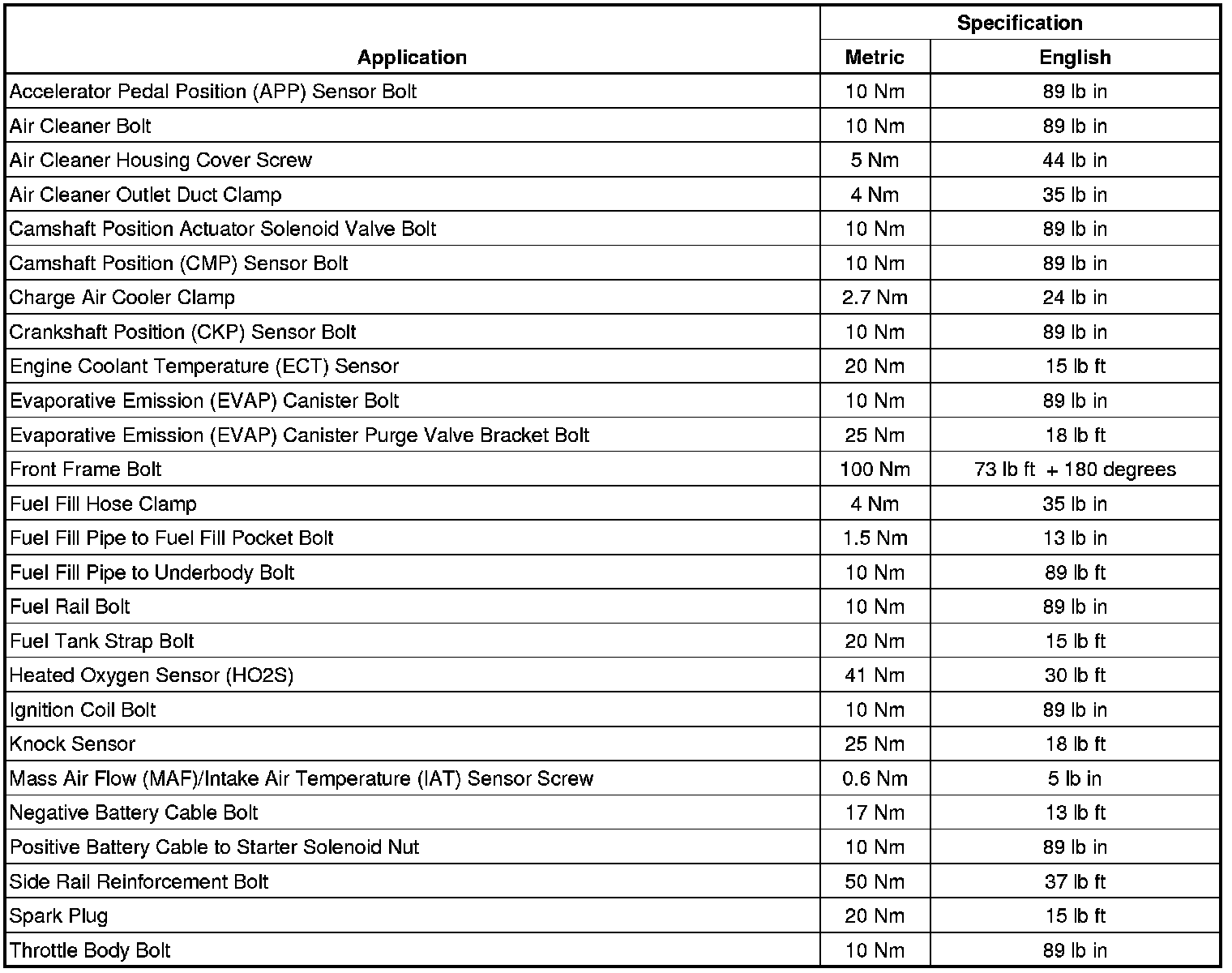 Fastener Tightening Specifications
