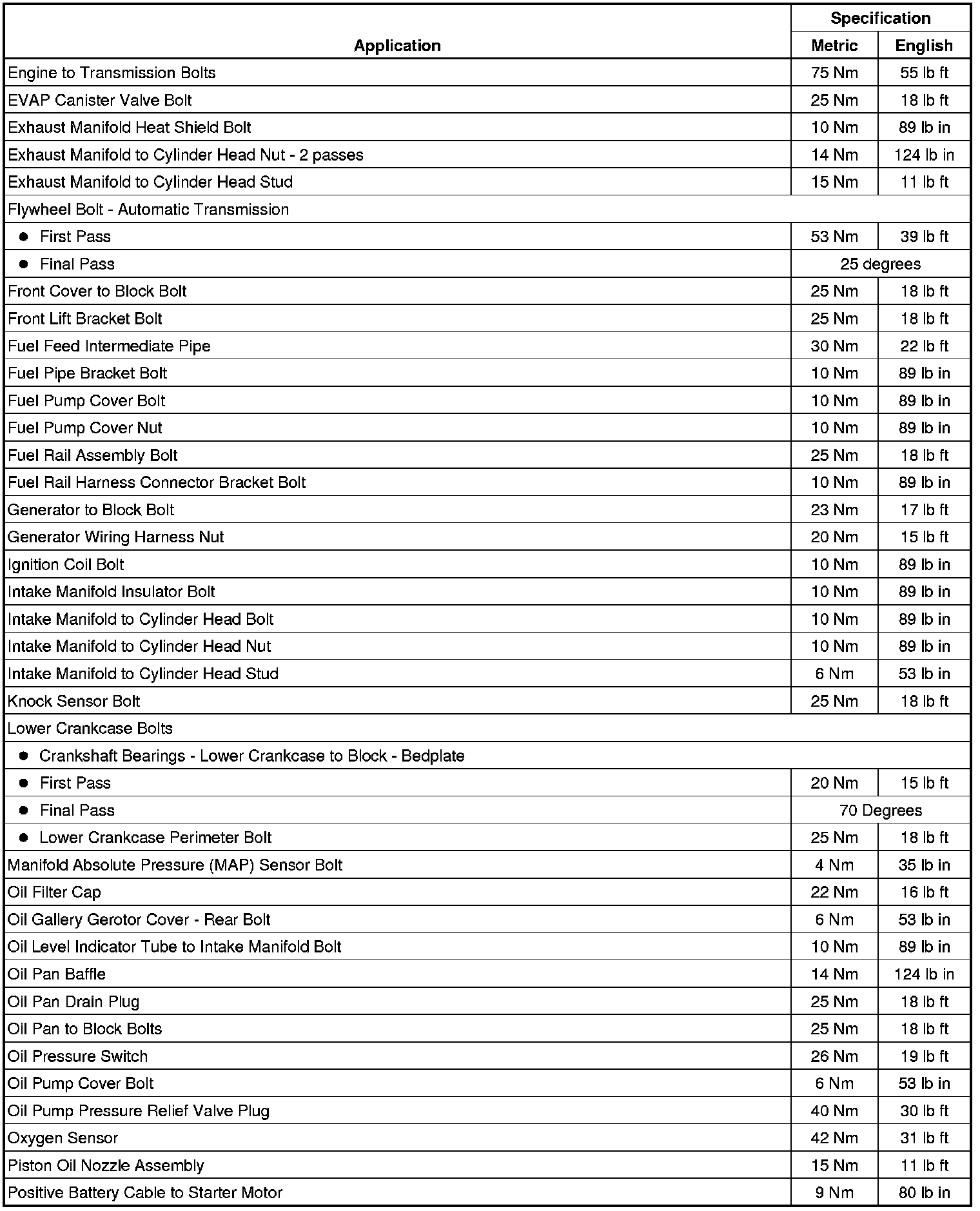 Fastener Tightening Specifications (LAF, LEA, or LUK)