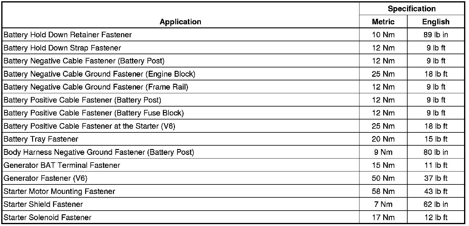 Starting and Charging: Specifications
