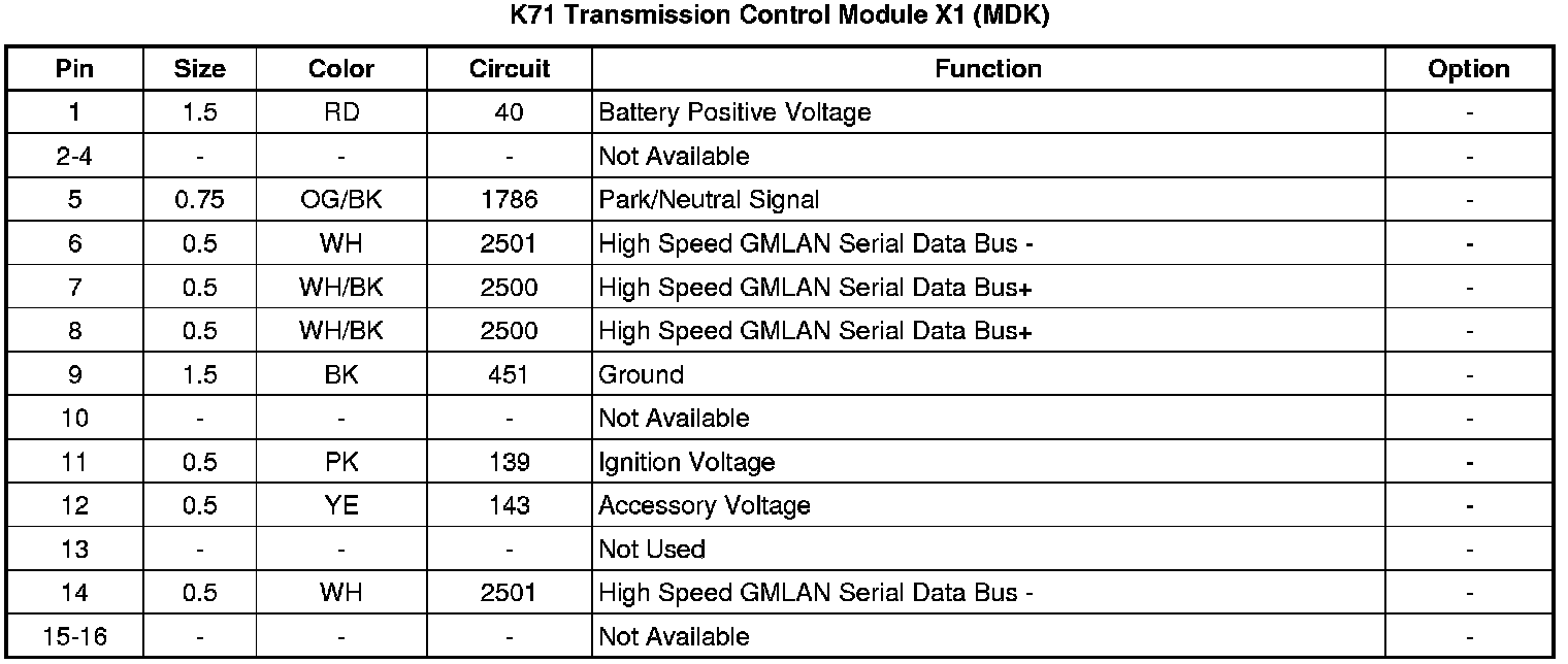K71 Transmission Control Module X1 (MDK)