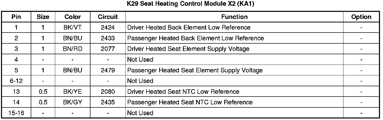 Seat Heating Control Module X2 (KA1)