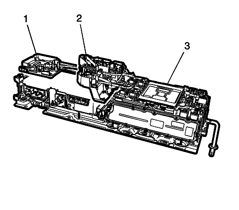 6. Lift the drive motor battery wire junction block relay (1) and the battery energy control module wiring junction block with the harness attached, and place on top of the battery energy control module (3).