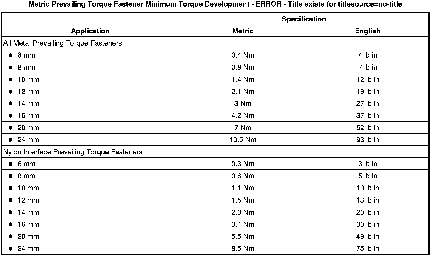 * The fastener develops the specified minimum torque against its counterpart prior to the fastener seating