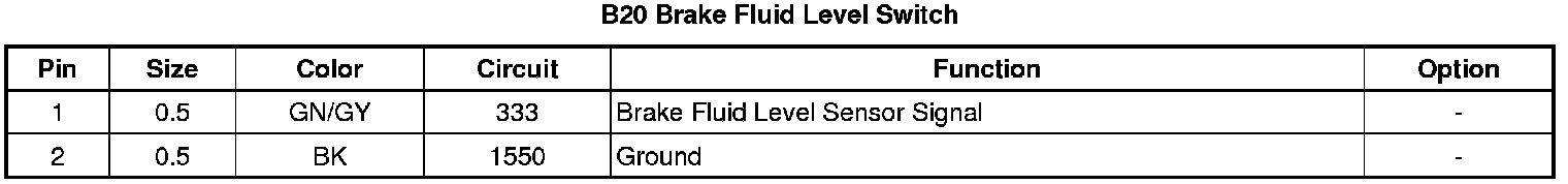 B20 Brake Fluid Level Switch