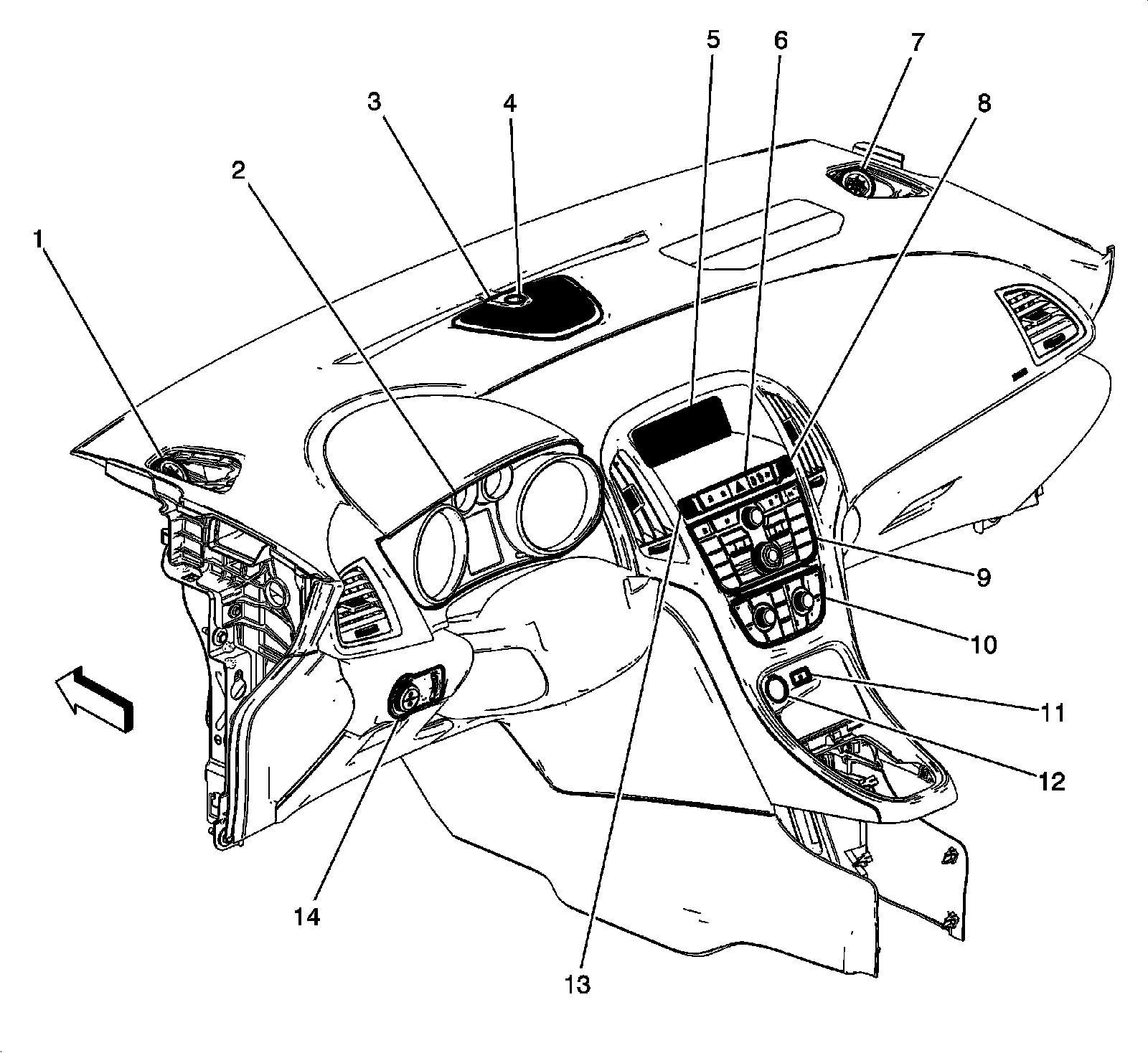 Home >> Buick >> 2012 >> Verano L4-2.4L >> Repair and Diagnosis >> Locations >> Component Locations >> Instrument Panel/Center Console Component Views >> Instrument Panel Components
