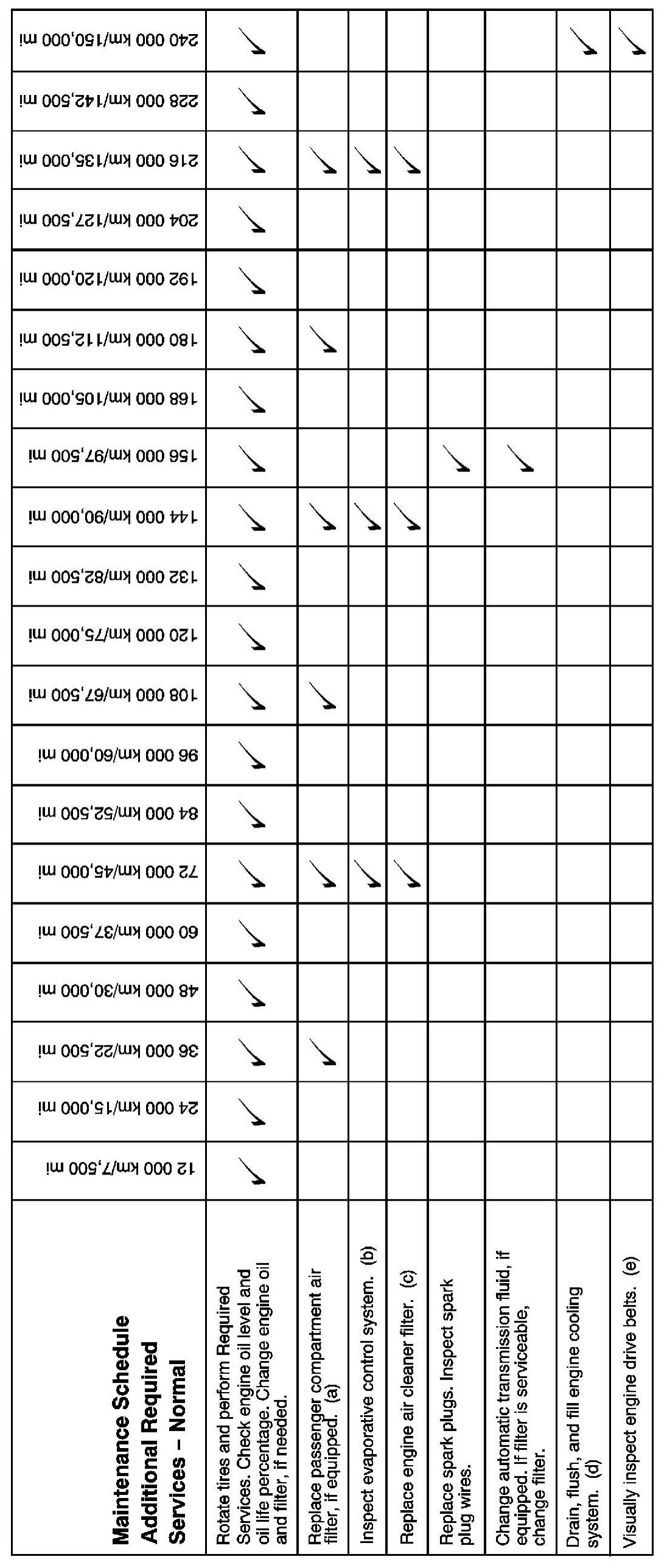 Footnotes - Maintenance Schedule Additional Required Services - Normal