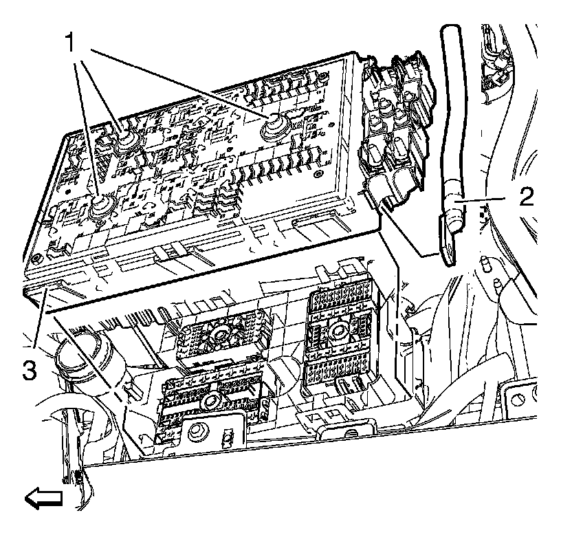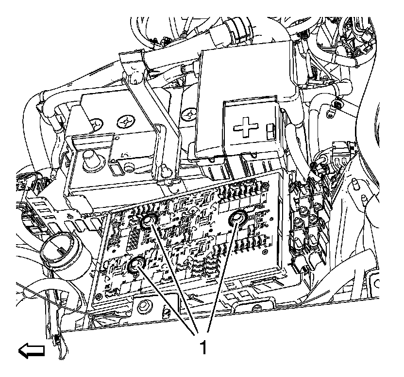 3. Install 3 front compartment fuse block bolt (1) and tighten to 7.2 Nm (64 lb in).