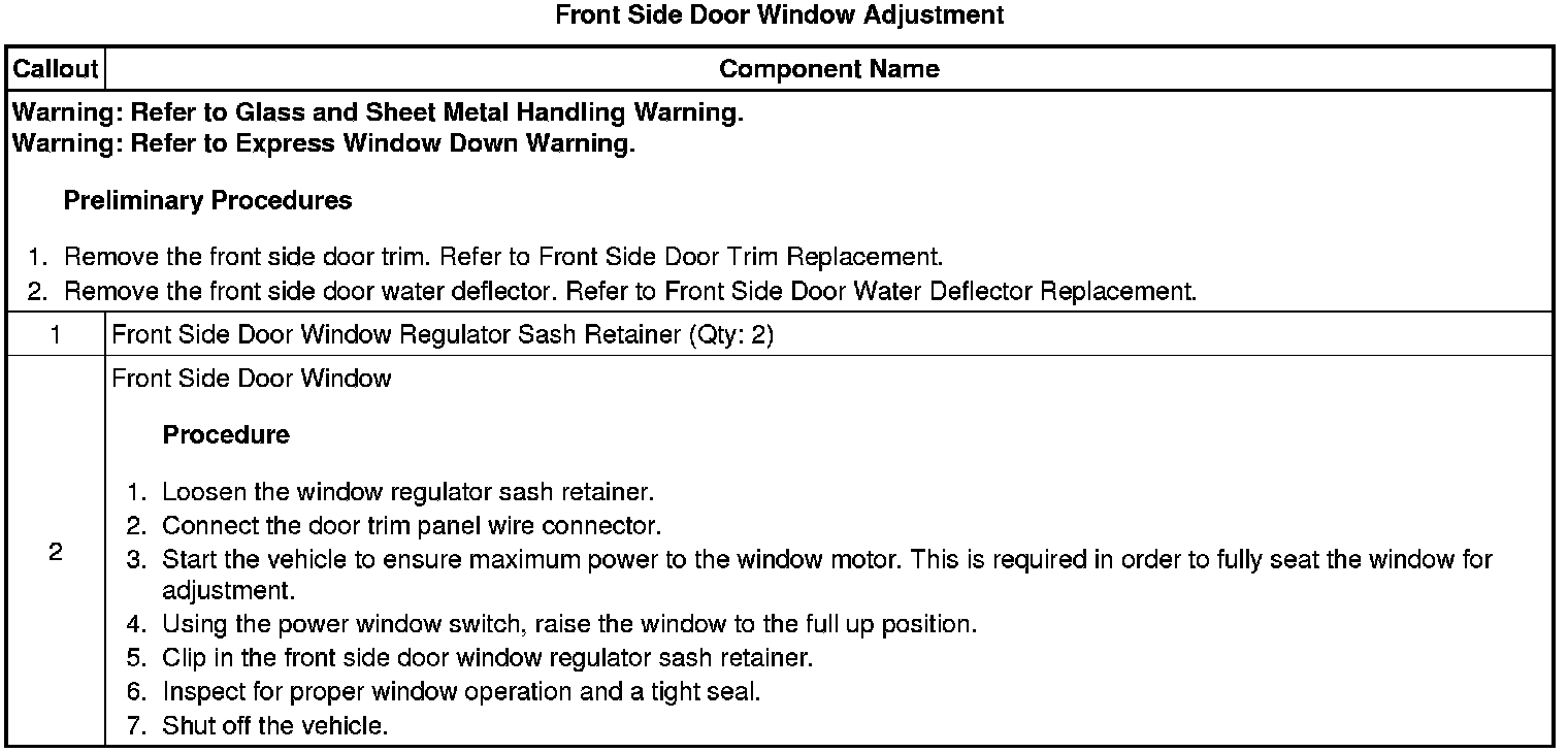 Front Side Door Window Adjustment