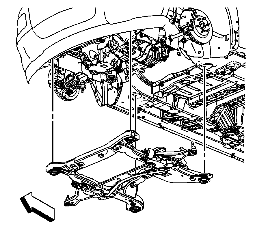 30.Remove the frame insulators from the frame. Refer to Drivetrain and Front Suspension Frame Front Insulator Replacement Service and Repair and Drivetrain and Front Suspension Frame Rear Insulator Replacement Service and Repair .