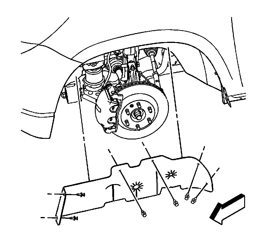 3.Remove the front tires and wheels. Refer to Tire and Wheel Removal and Installation .