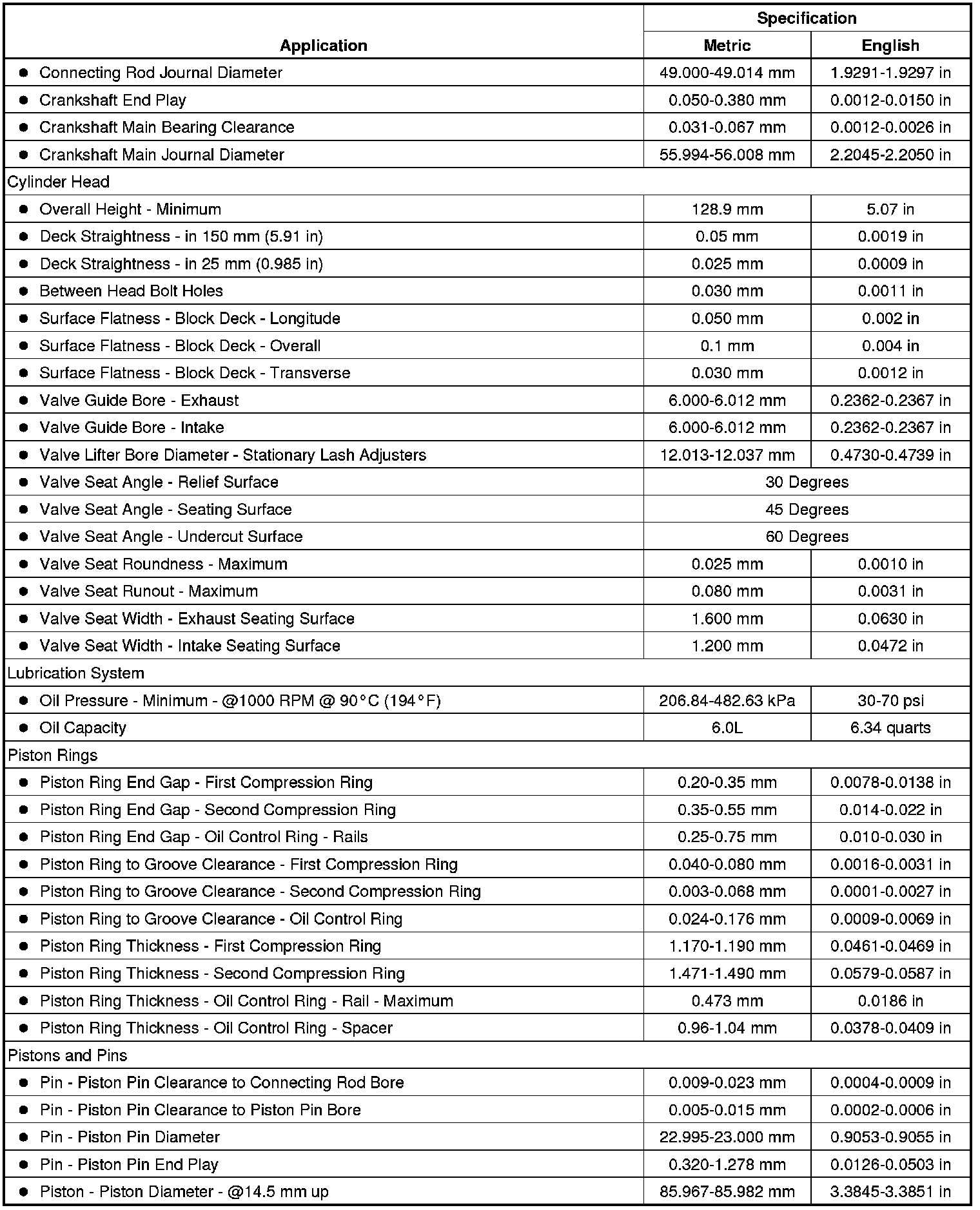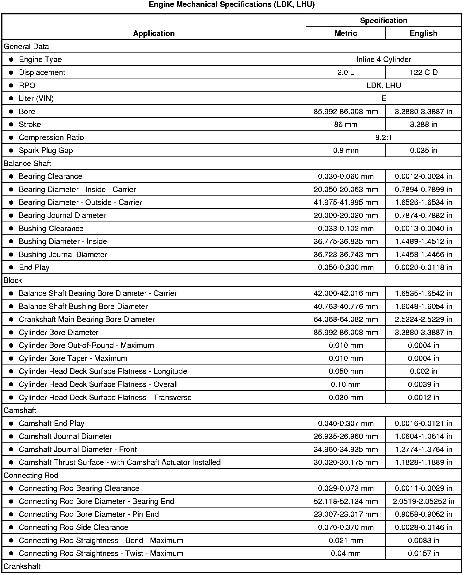 Engine Mechanical Specifications (LDK, LHU)