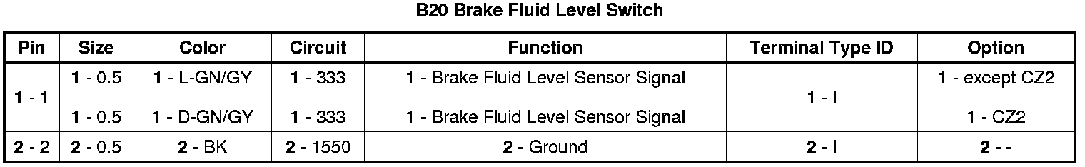 B20 Brake Fluid Level Switch