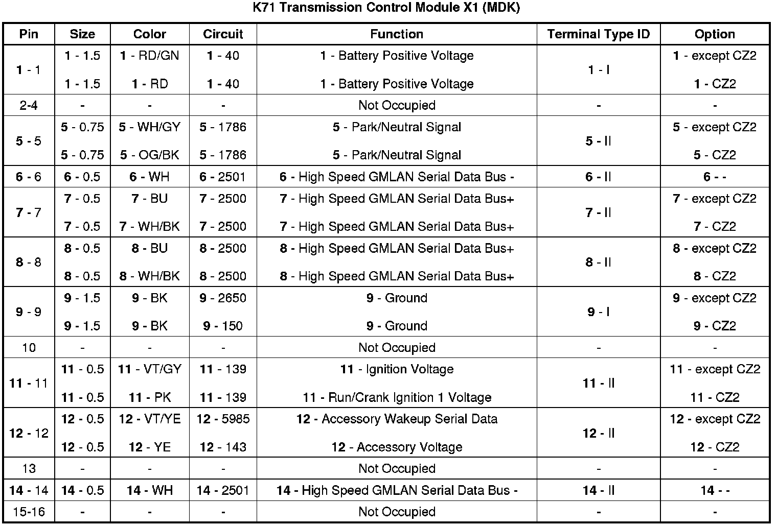 K71 Transmission Control Module X1 (MDK)