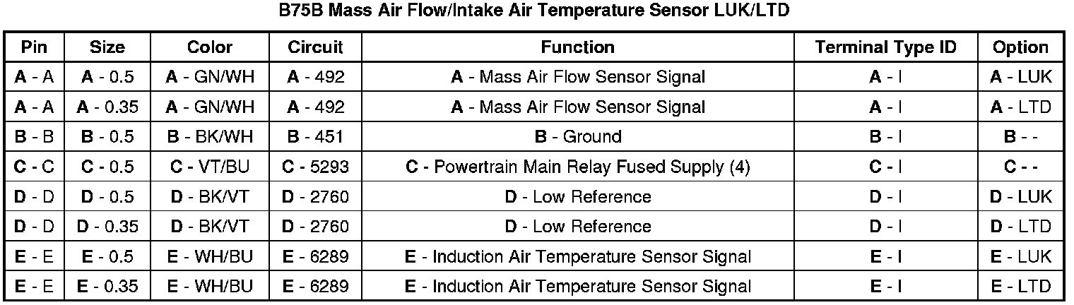 B75B Mass Air Flow/Intake Air Temperature Sensor LUK/LTD