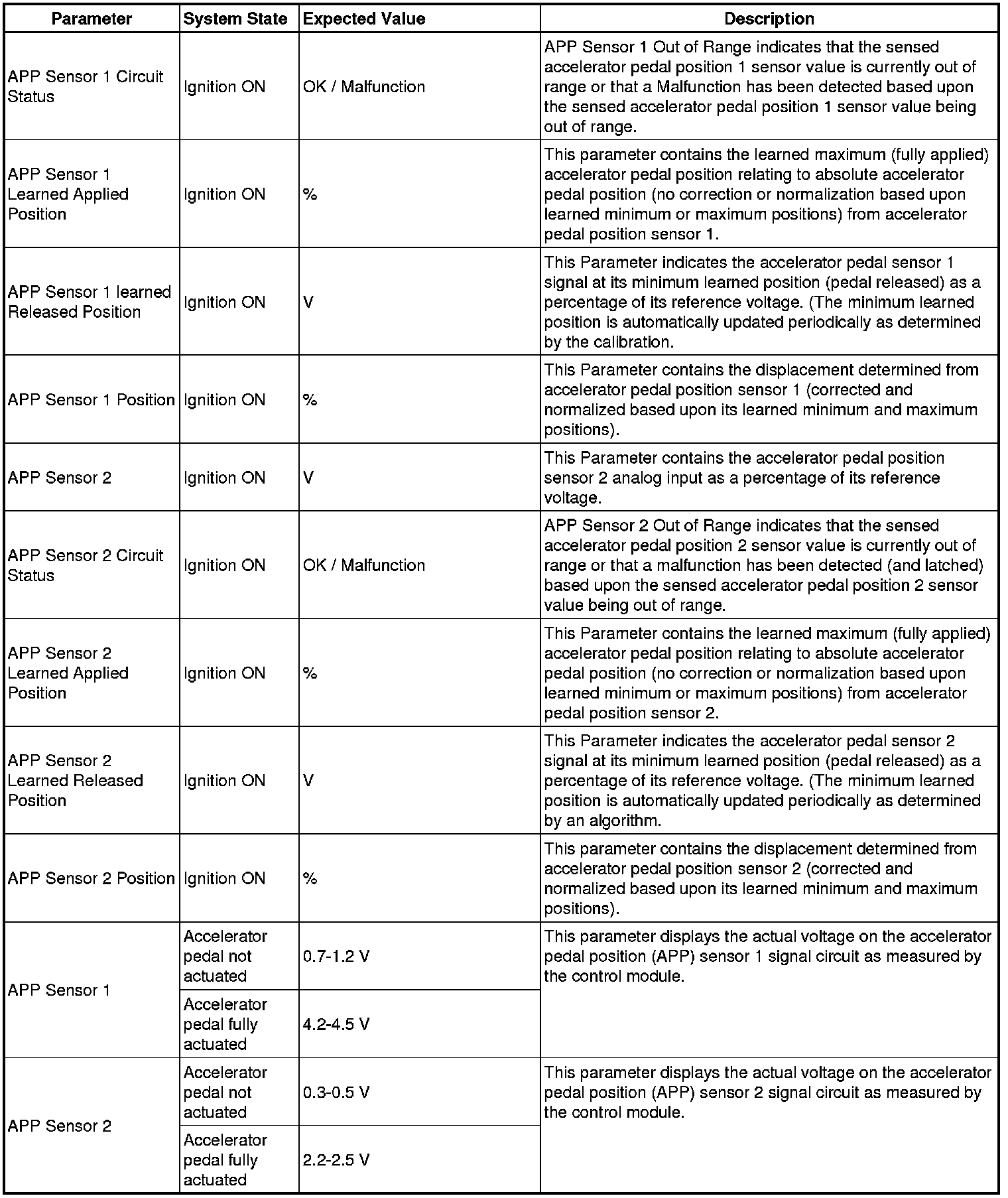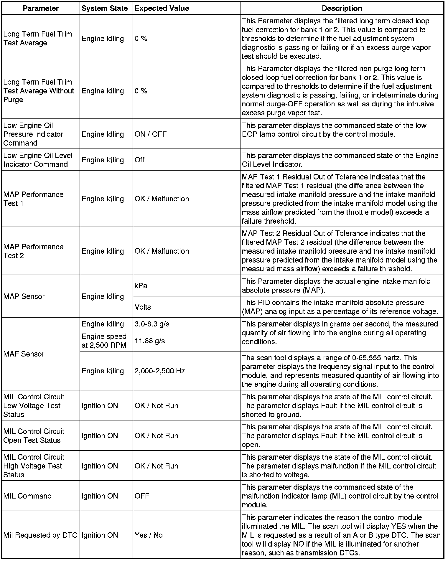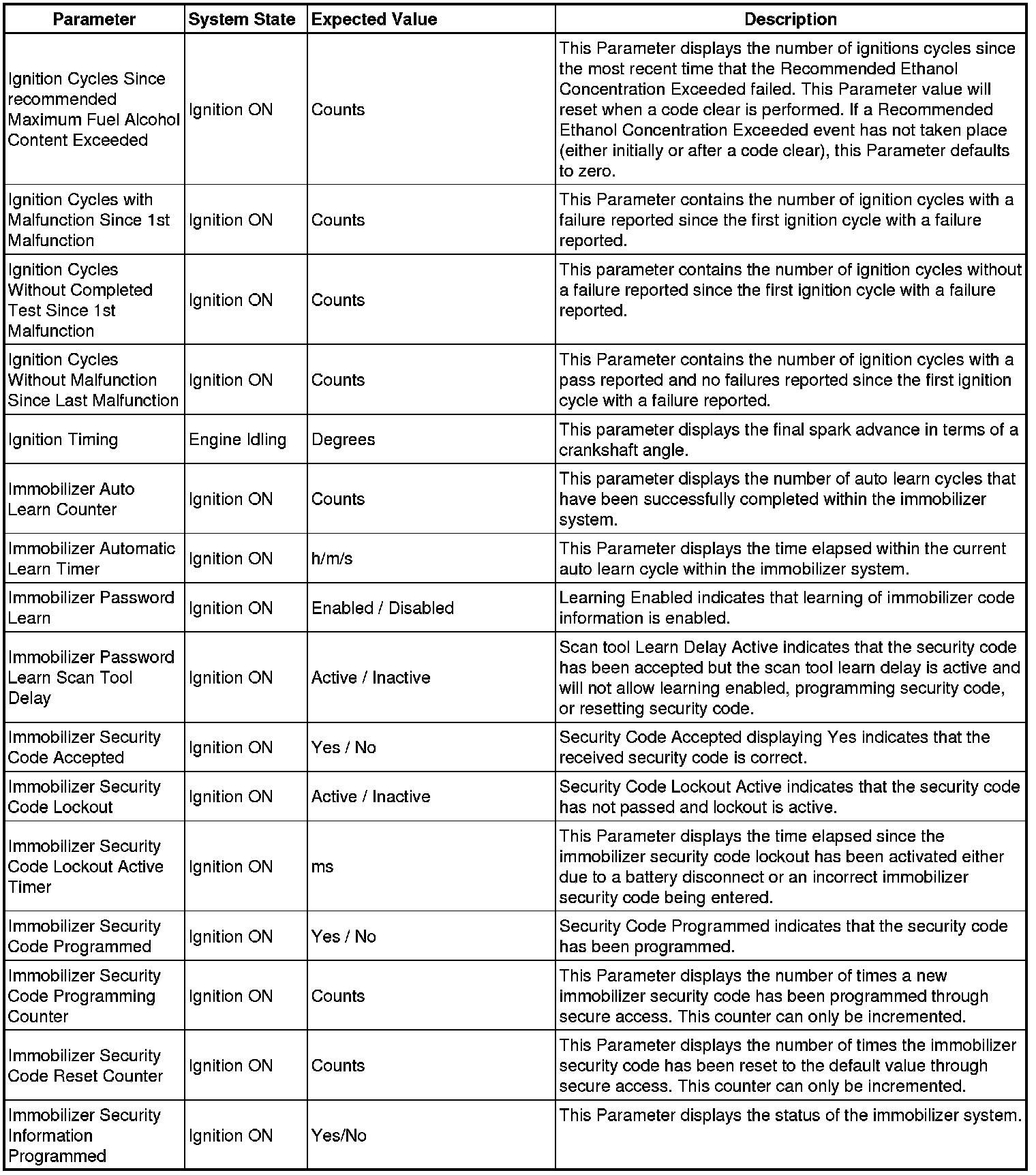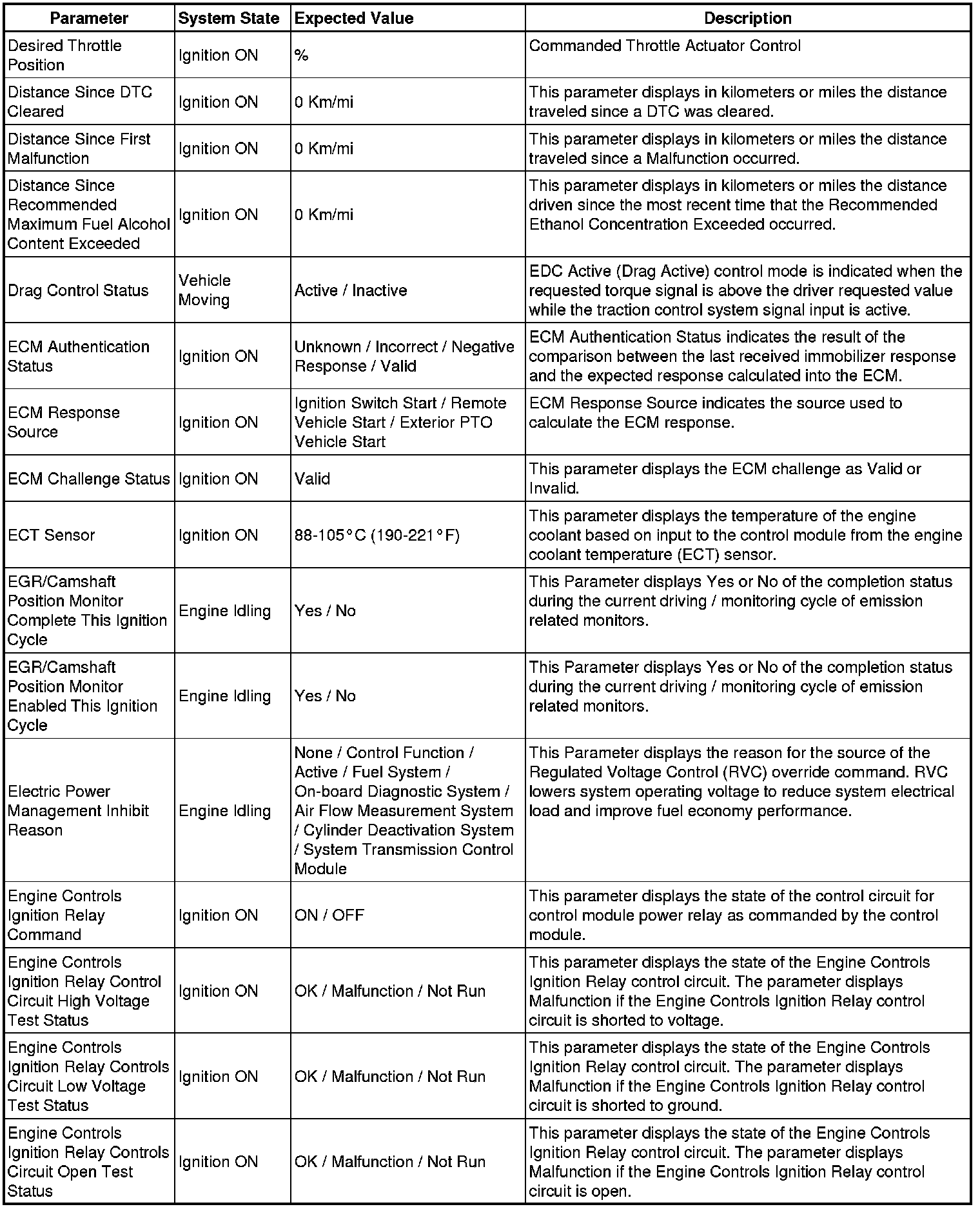The Engine Control Module Scan Tool Data List contains all engine-related parameters that are available on the scan tool. The list is arranged in alphabetical order. A given parameter may appear in any one of the data lists, and in some cases may appear more than once, or in more than one data list in order to group certain related parameters together.
