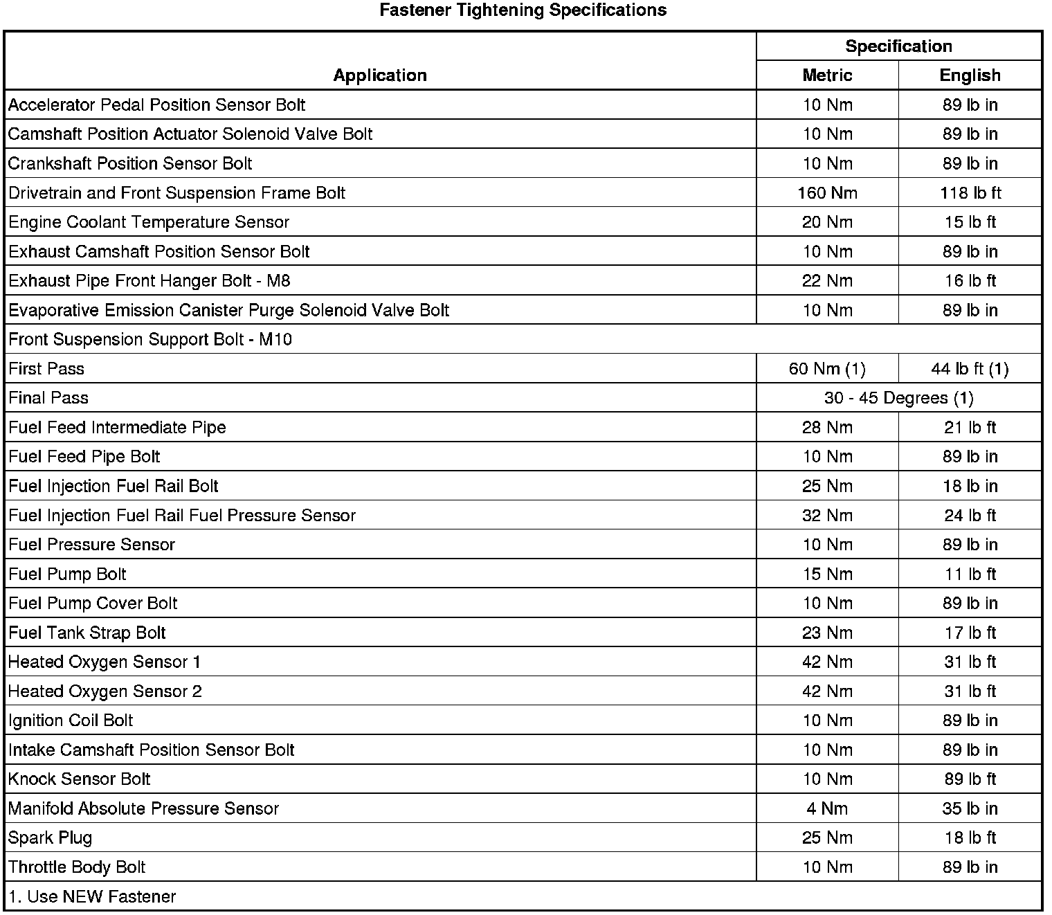 Fastener Tightening Specifications