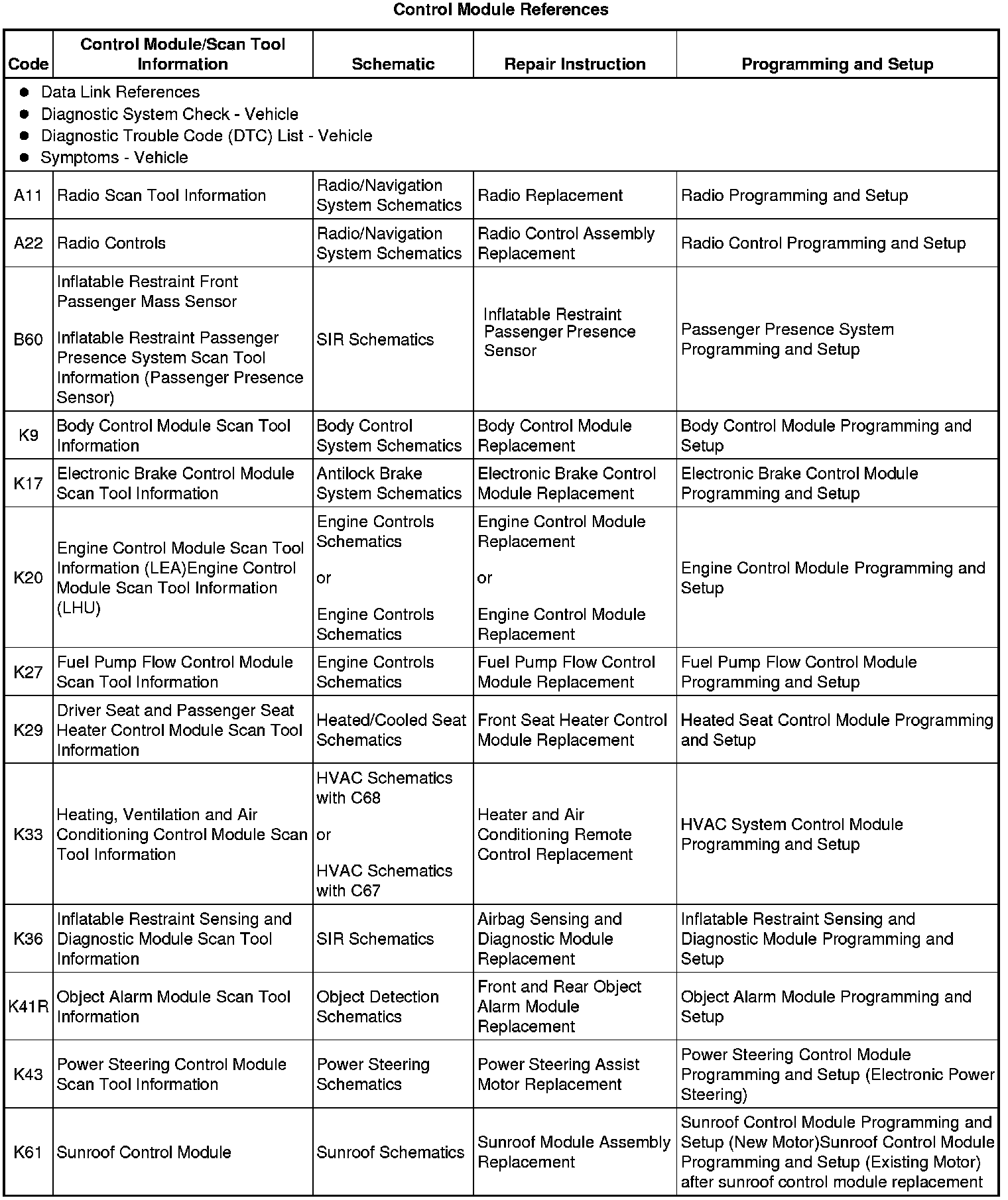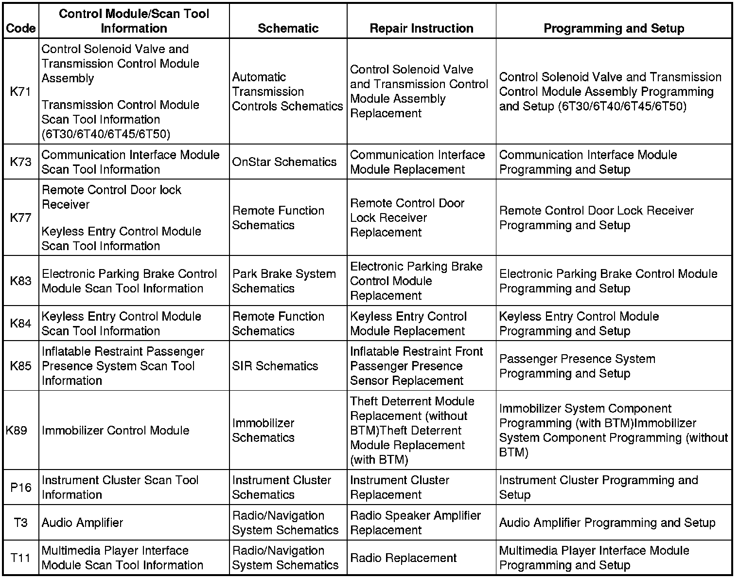Home >> Buick >> 2013 >> Verano L4-2.4L >> Repair and Diagnosis >> Testing and Inspection >> Programming and Relearning >> Control Module References