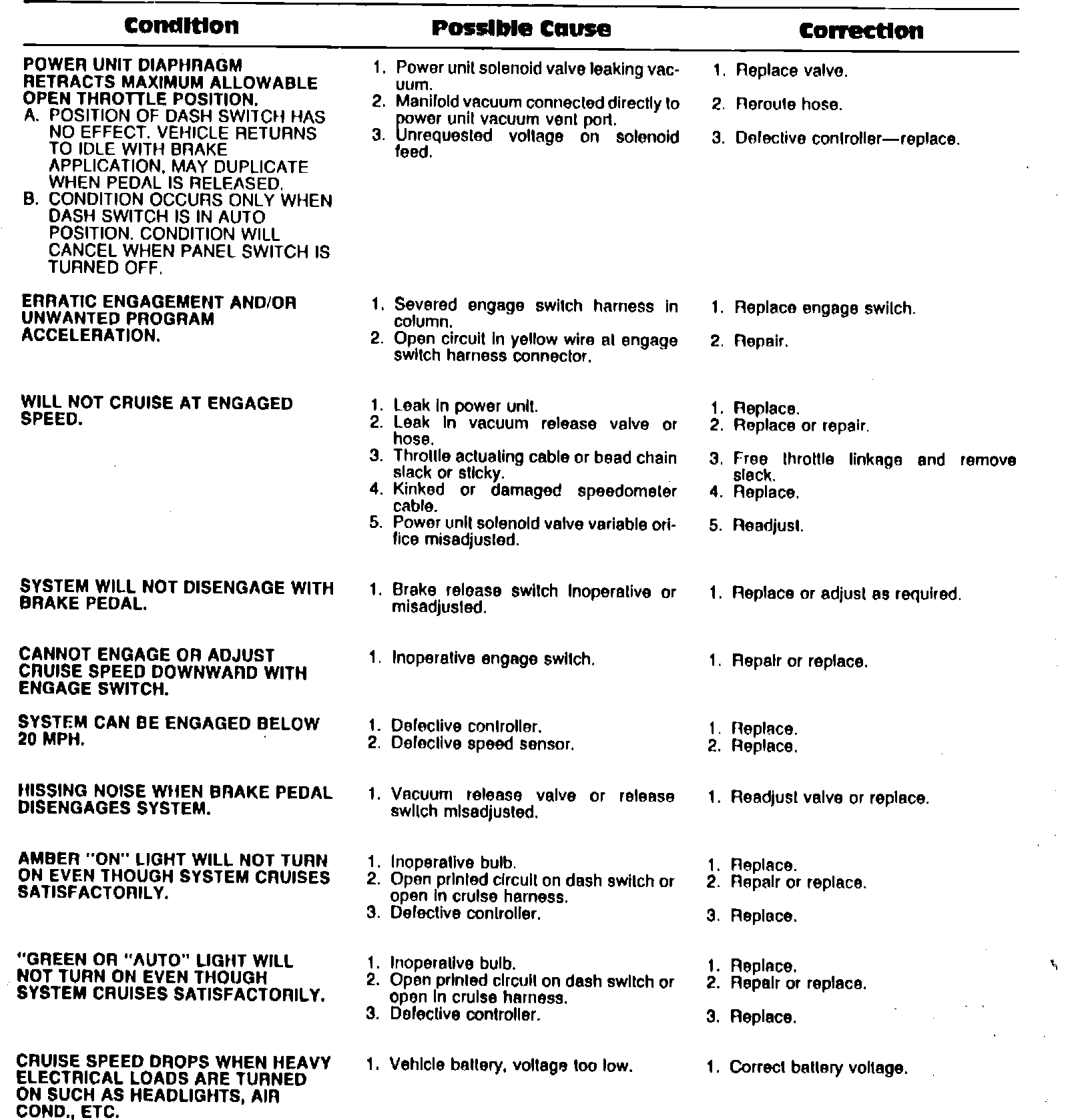 Fig. 1 Cruise control troubleshooting chart: