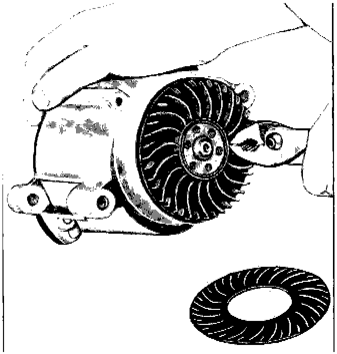 2. Carefully pry outer disc from filter fan, then remove remaining portion of filter with pliers, Fig 9.