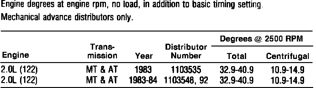 Distributor Timing Advance Specifications:
