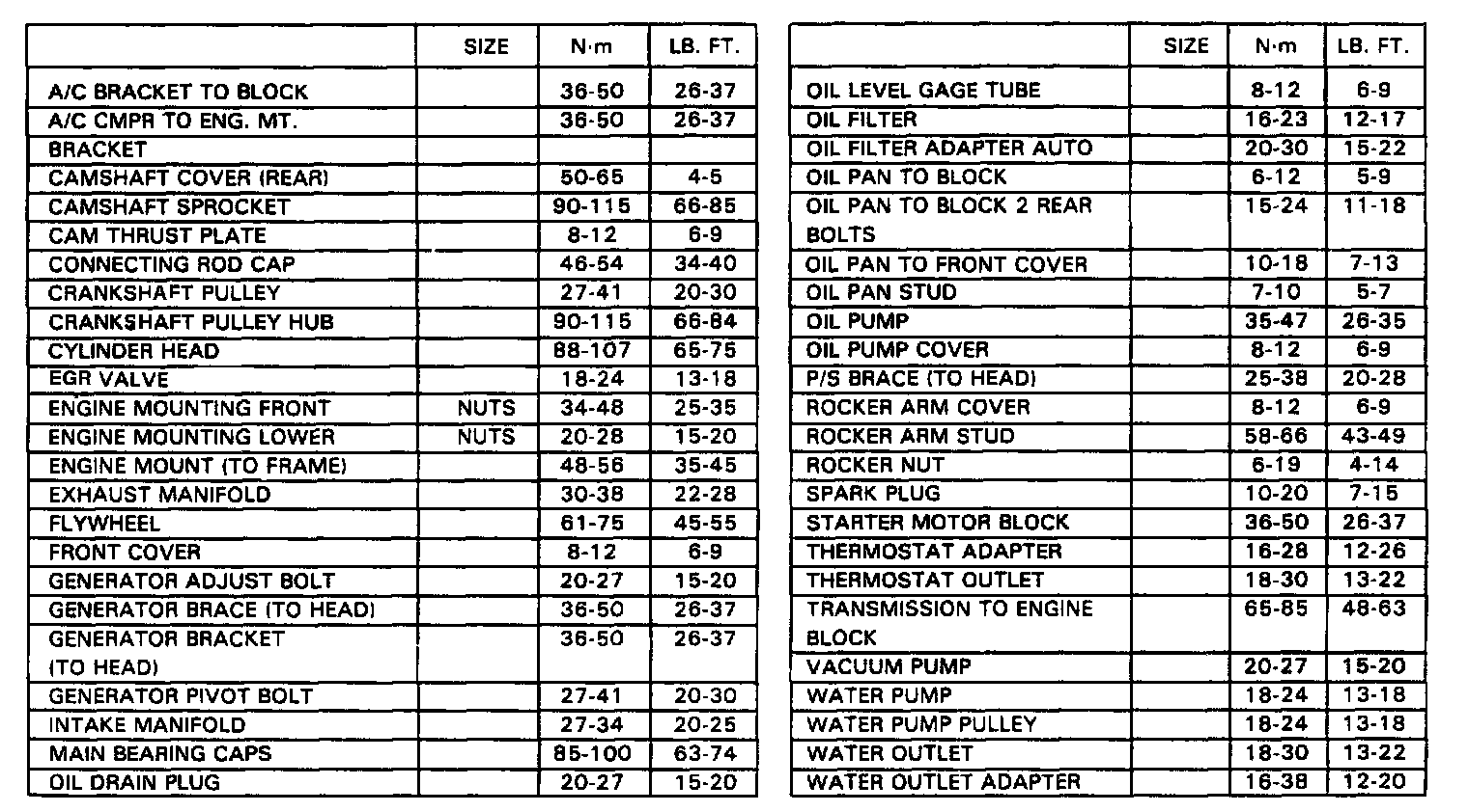 Torque Specifications: