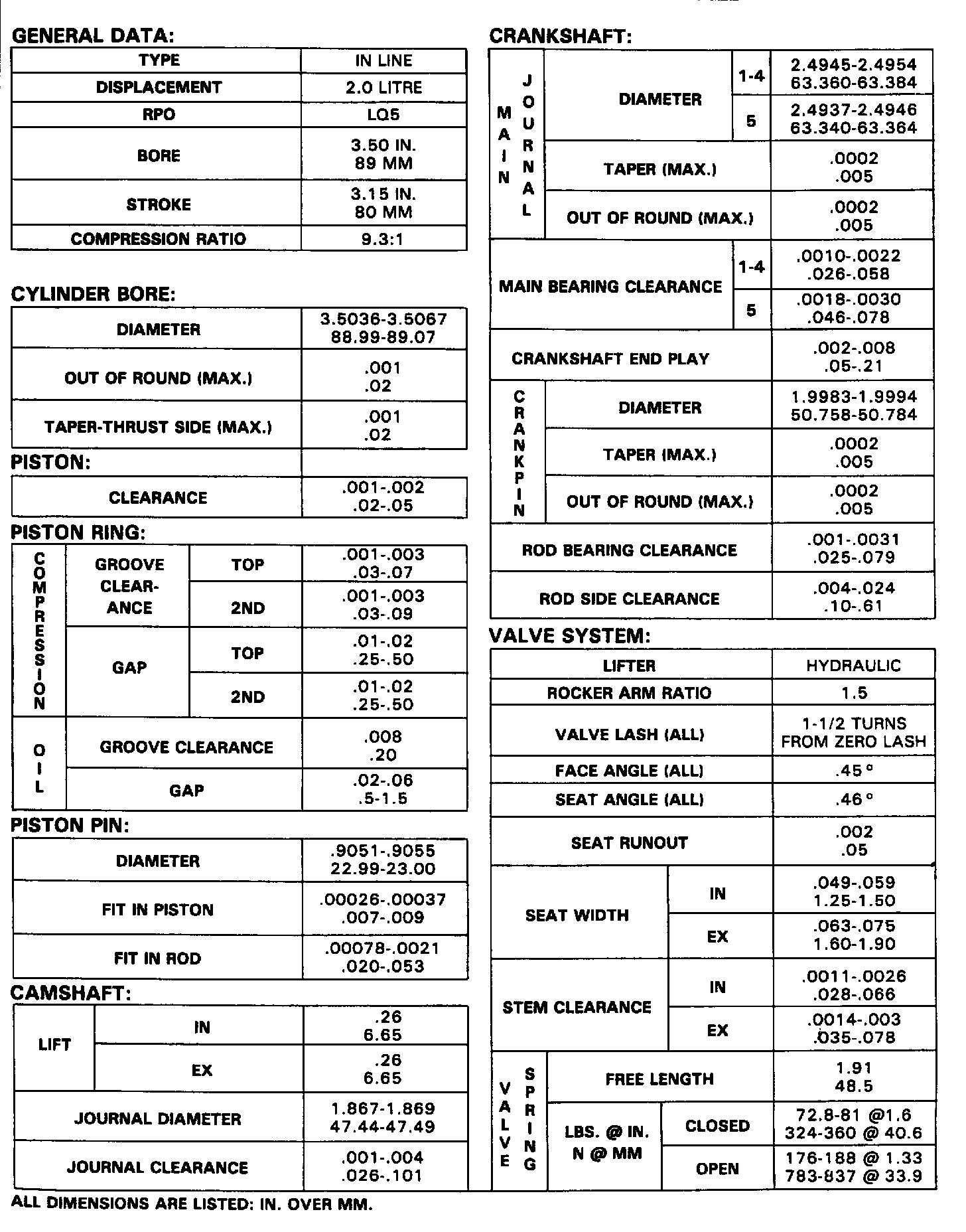 Cimarron L4-121 2.0L