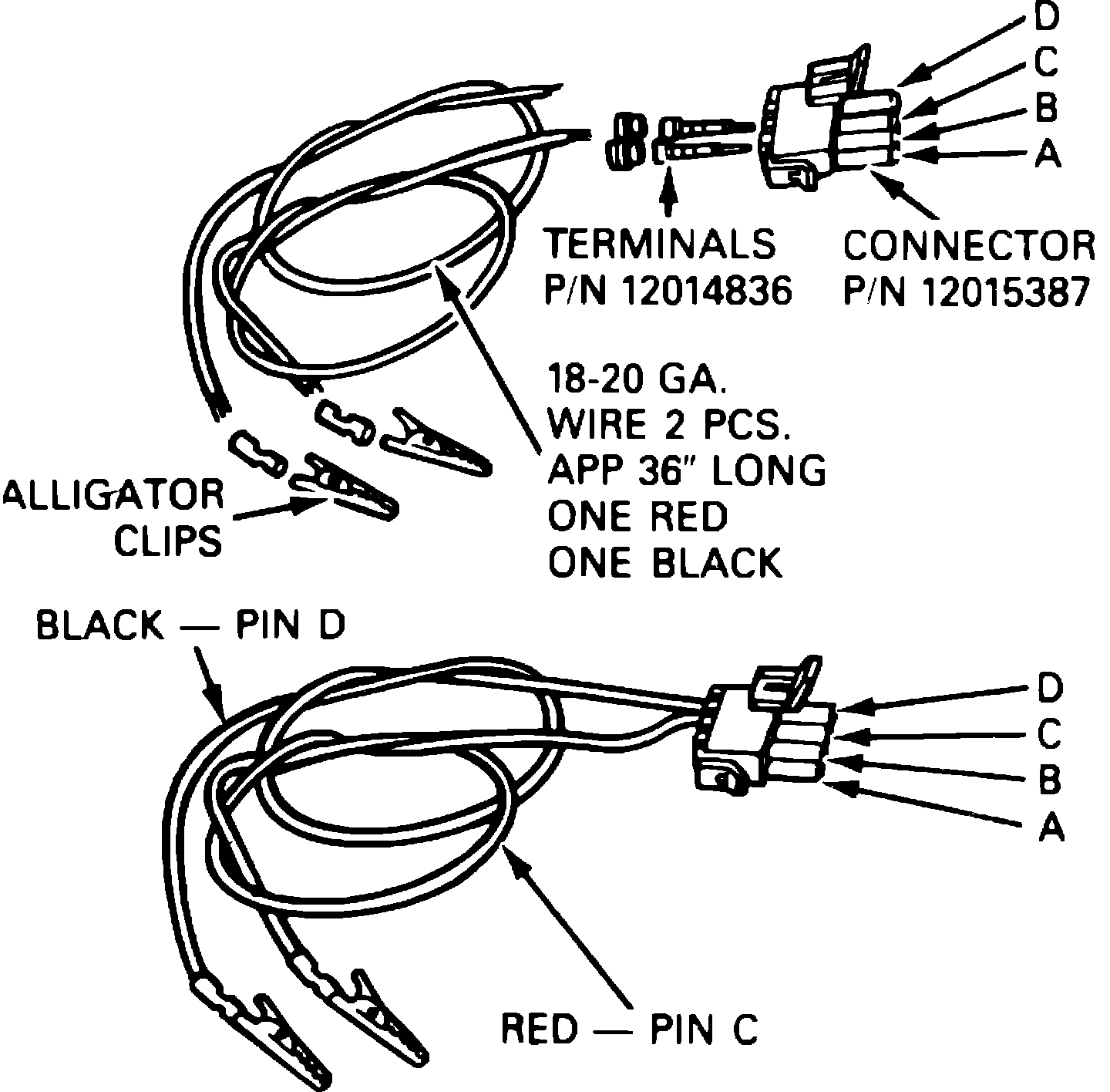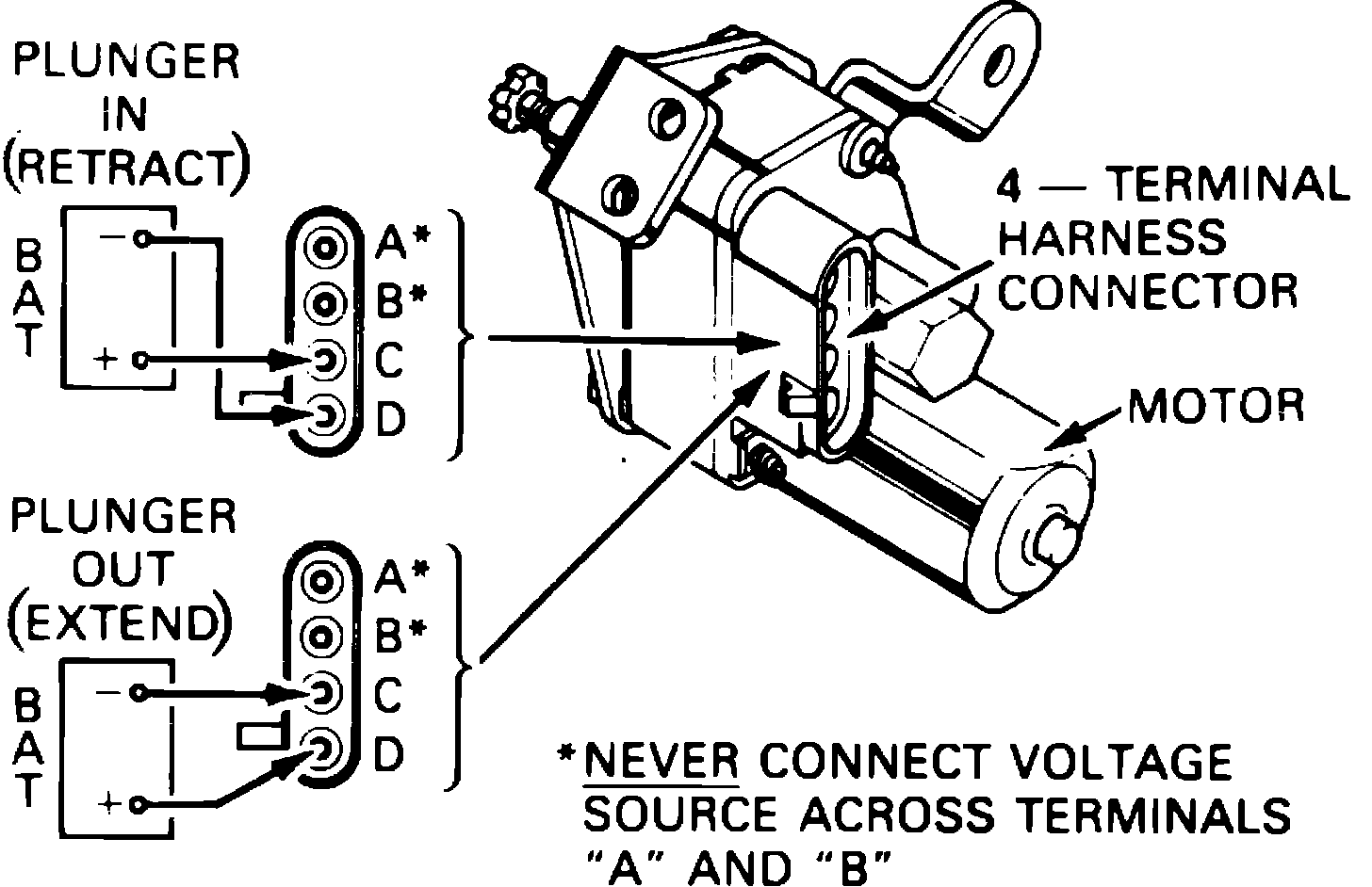 13. Extend ISC plunger by connecting ISC terminal D to 12 volt power source, then momentarily grounding terminal C, as many times as necessary, until plunger is fully extended.