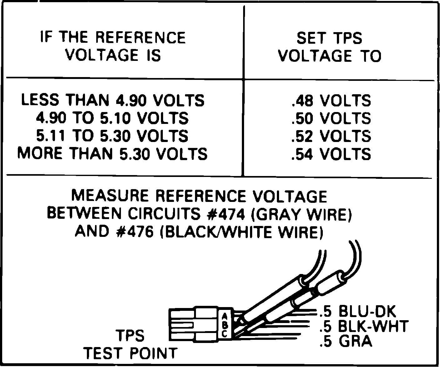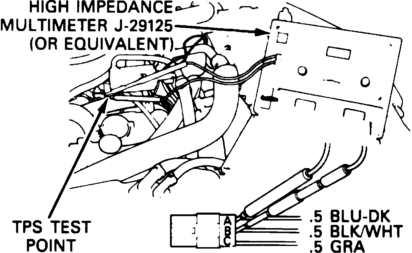 9. Connect a digital voltmeter to TPS harness test point, Fig. 101, as follows: