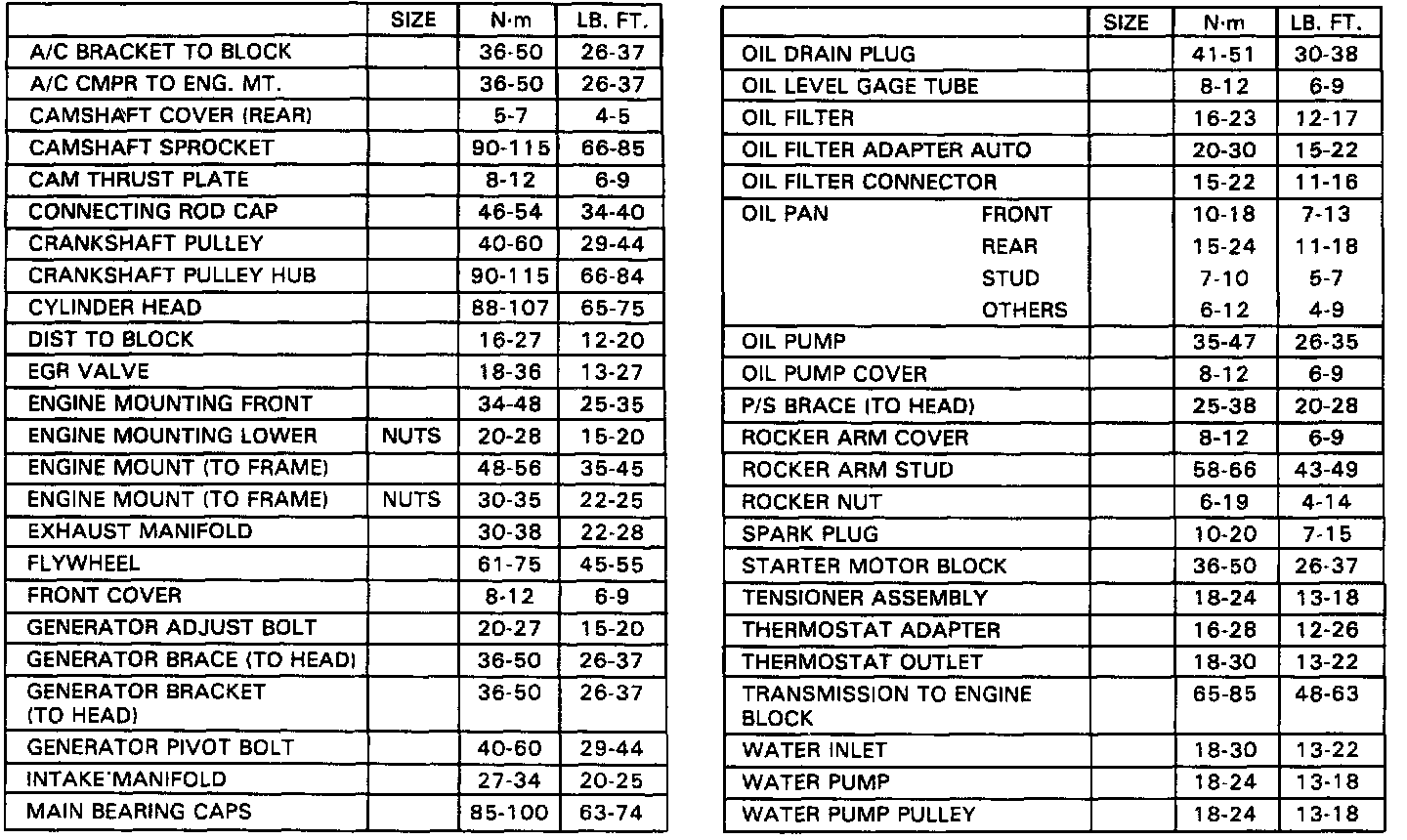 Torque Specifications:
