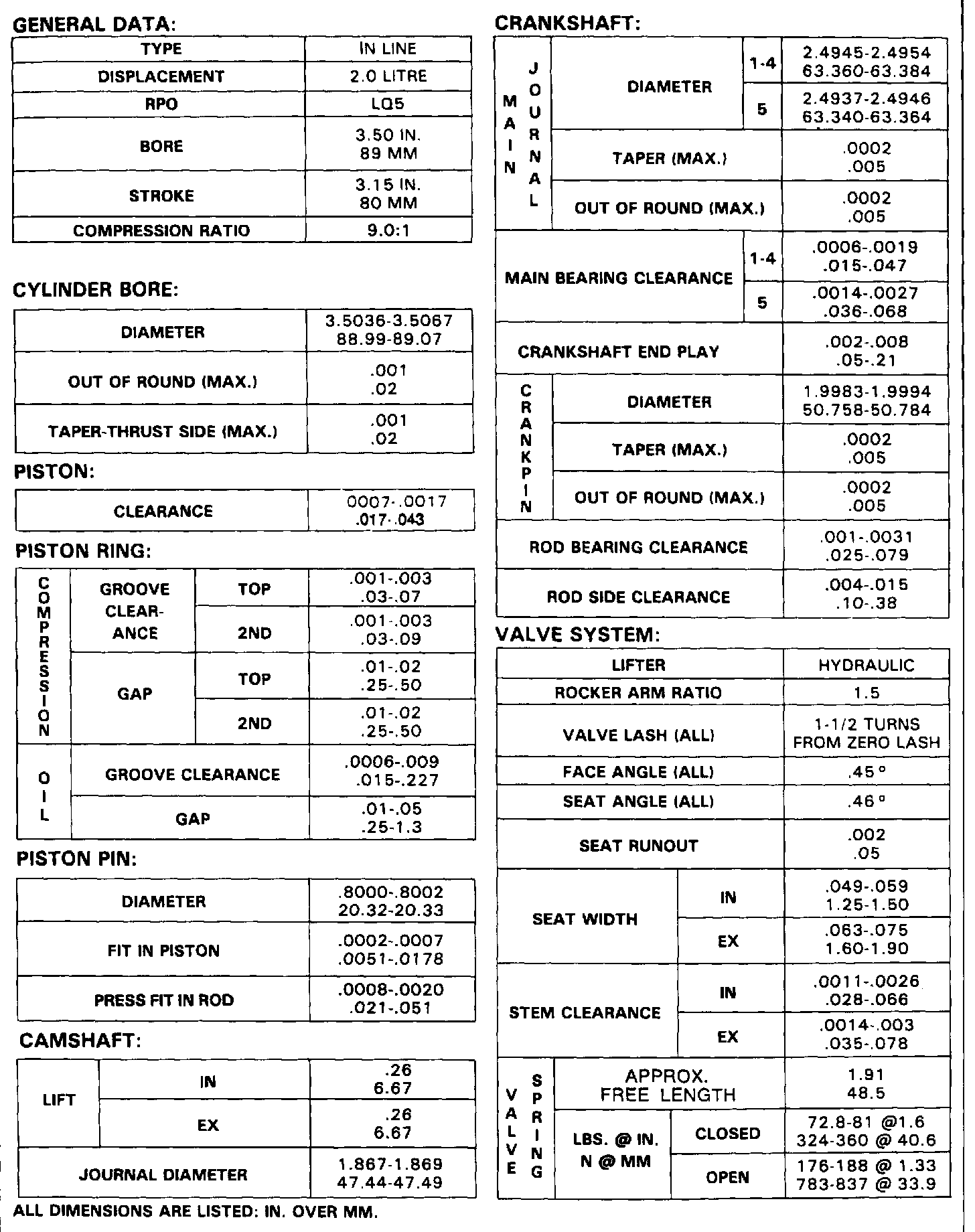 Cimarron L4-121 2.0L